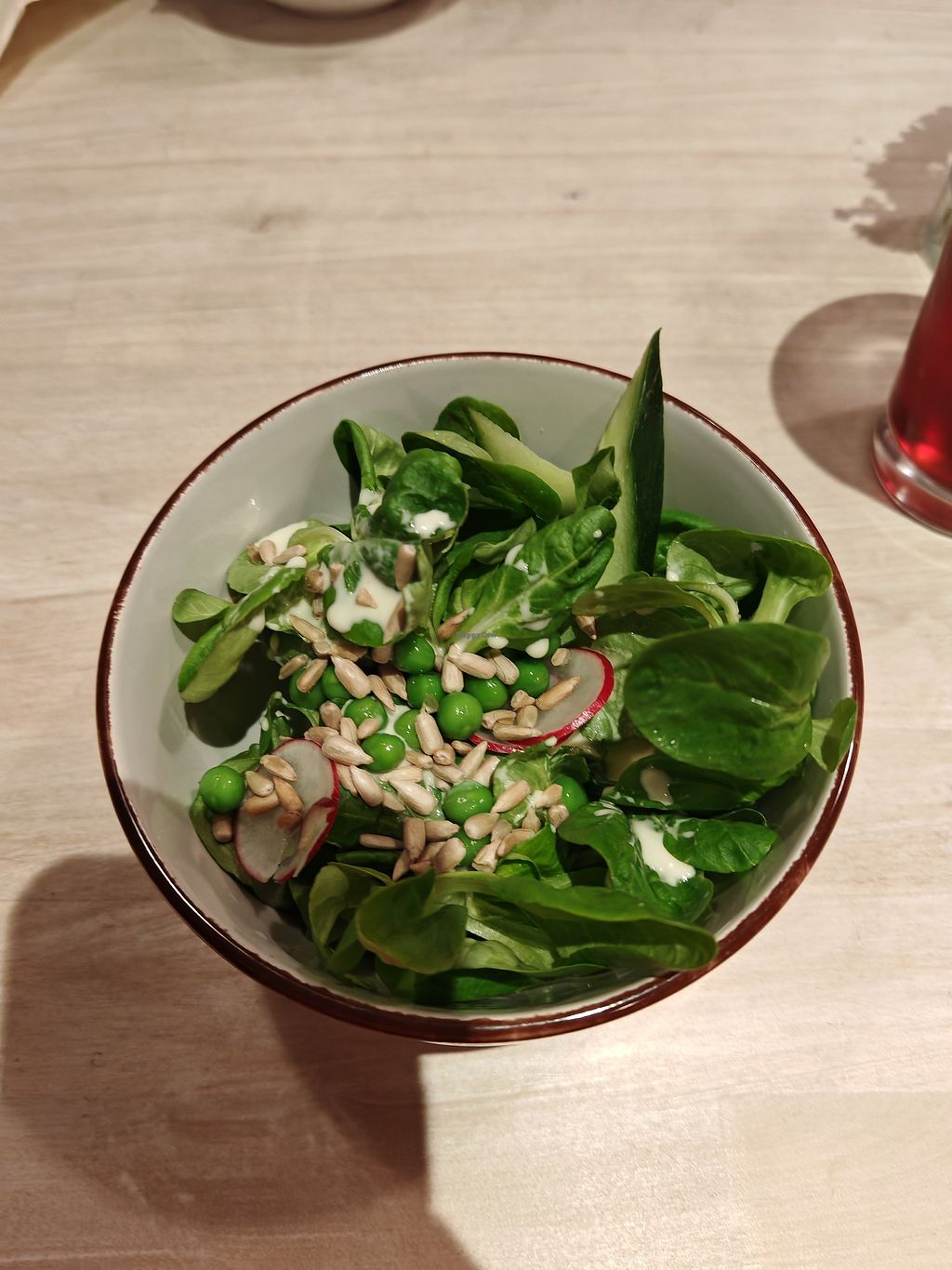Unglaublich leckeres Essen. Ich hatte das Kürbisrisotto. Vorab gab es ein saisonaler Vorspeisensalat. Super hochwertige Lebensmittel. Der Kellner war sehr freundlich und präsent.