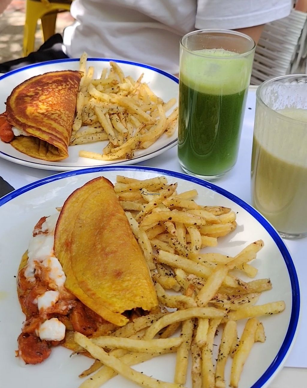 I ordered chickpea 'omelette' with soy sausage, and I didn't expect it to be that good. Absolutely recommend!