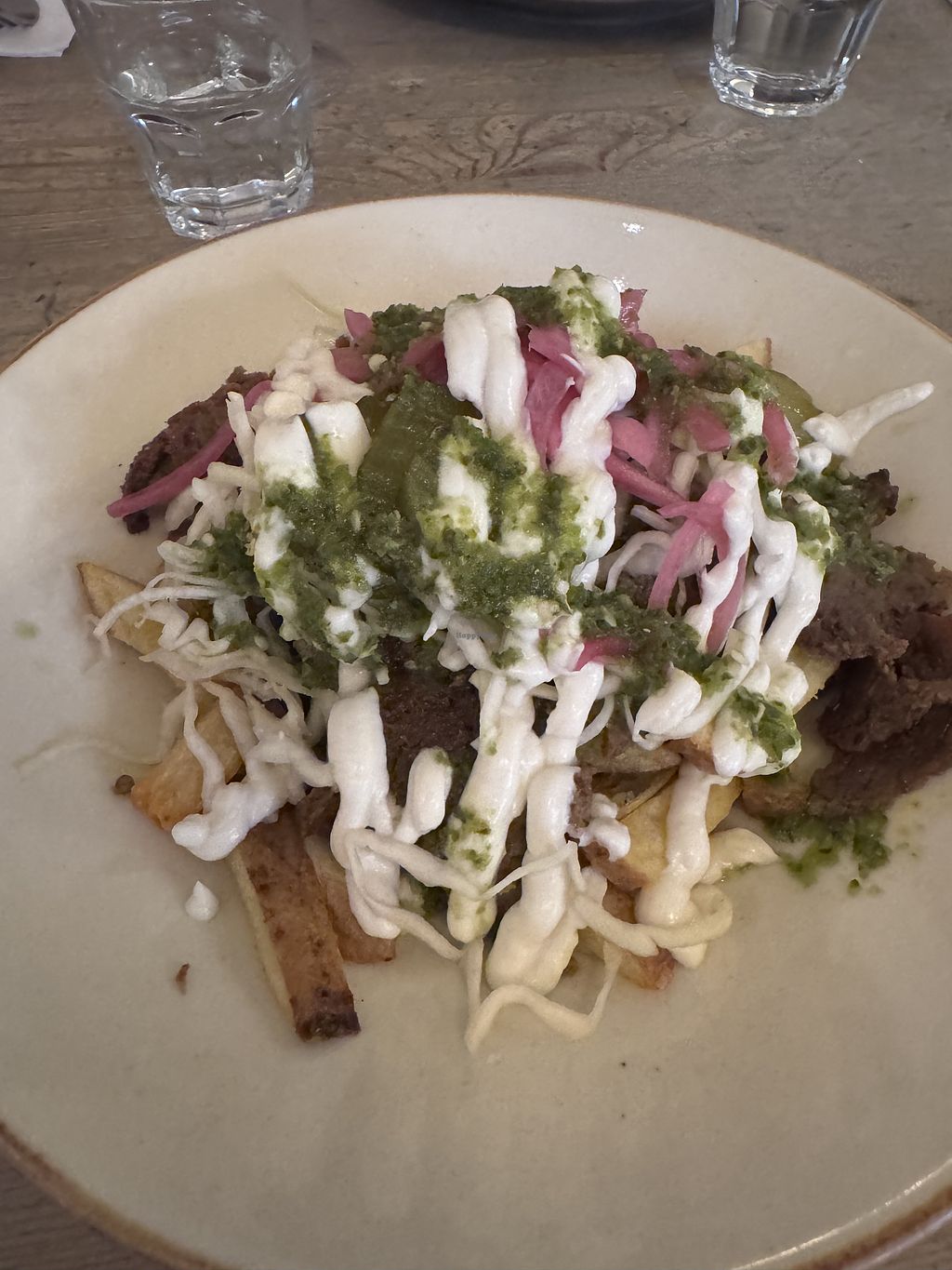 This was tucked away on the third floor , cool decorations with a retro, funky, Californian vibe. We had the Californian sushi rolls and sushi taco with fries- all were amazing!