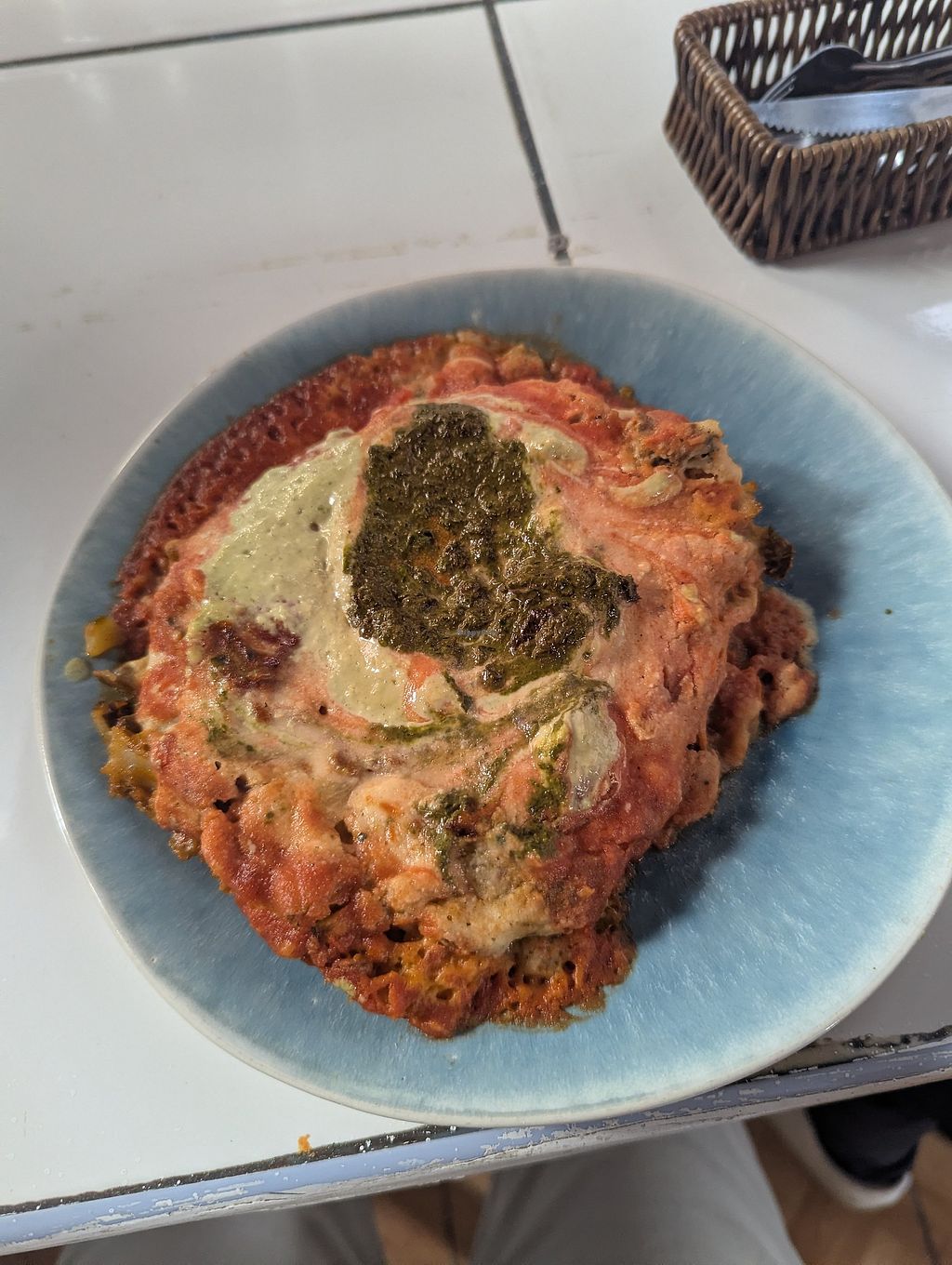 Menu del dia is absolutely value for your money! We had the falafel pita and lasagne (and quinoa soup for starter). Lasagne was huuuge! Very tasty. The burritos looked amazing too.