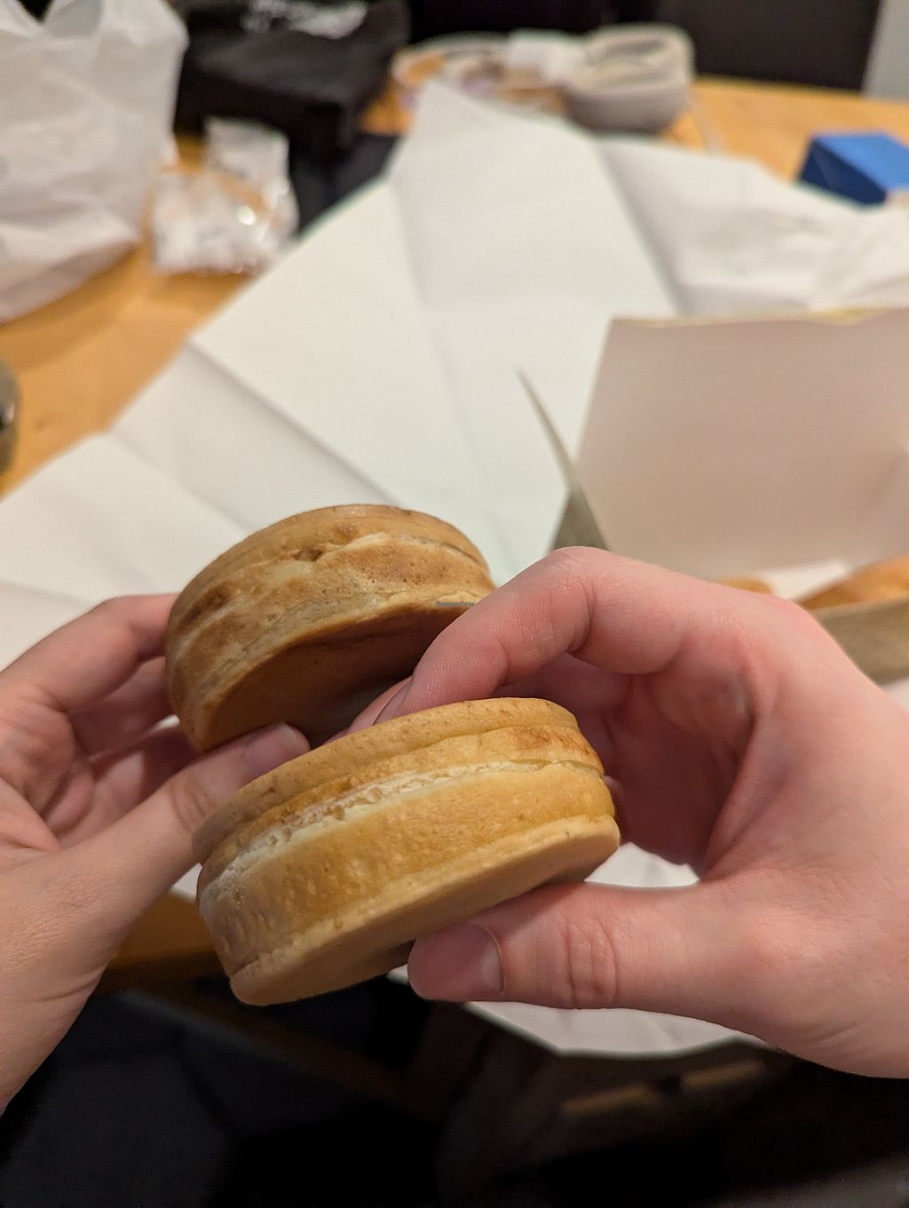 Venden pastelitos que son una mezcla entre tortitas y dorayakis rellenos de anko (creo que no tienen traducción en español (?)). Están bastante bien de precio, compramos 4 para compartir por 440 yenes, menos de un euro cada uno y son bastante contundentes y te los ponen en una cajita muy cuqui. Cuando fuimos no había cola pero sí que hay un espacio para hacer cola y esperar así que me imagino que suele haber bastante gente de normal. Es fácil de encontrar dentro del JR Isetan en la planta B2.