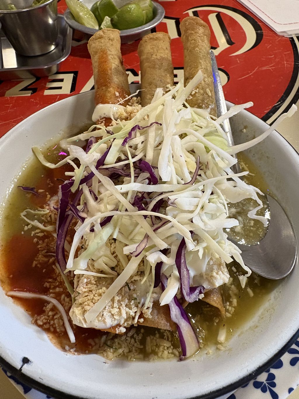 I had the tacos Flautas Ahogadas and it was amazing ! Perfect in terms of flavors and quantity and all ingredients were fresh. I will probably come back to taste a few more😄In addition service was super friendly and it is good sitting at the outdoor terrace.