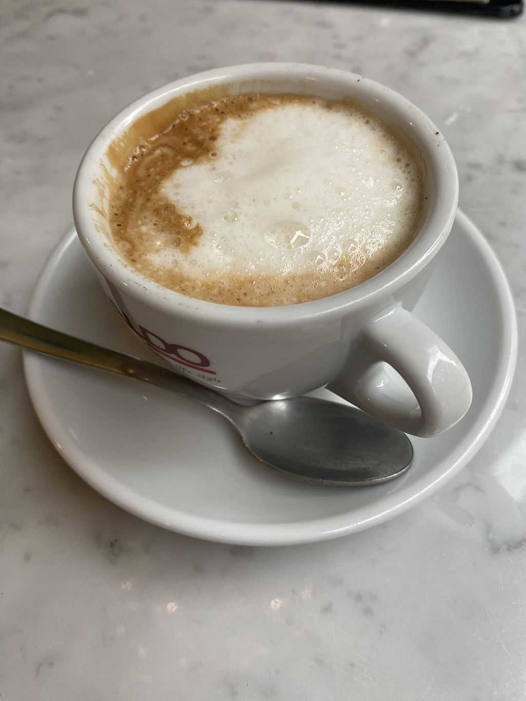 Depende del día tiene distintas opciones, pero por la mañana tiene al menos una. El primer dia probamos el cornetto con mermelada de naranja, y el segundo con moras. La dueña fue muy amable y tanto eso como el café (para el cual tiene leche de soja) estaban buenísimos. Ayer vinimos sobre las 18 y ya se le habían acabado los cornettos veganos, pero nos dijo que por la mañana siempre tenía.