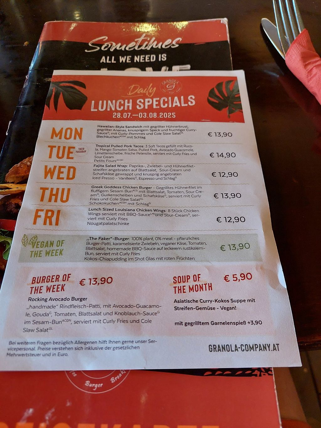 I liked the many vegan options and the easy way to opt out of high carb meals nu eliminating bread and adding salad. My boyfriend had the kale burger, which was nice, and I had the Vegan tacos. I liked the cauliflower, but the wraps were cold and didn't seem to be grilled, which was a shame. Otherwise it was quite nice in an in between travels kind of way. Music inside was loud and not to our taste so we sat outside, where the road is very audible.