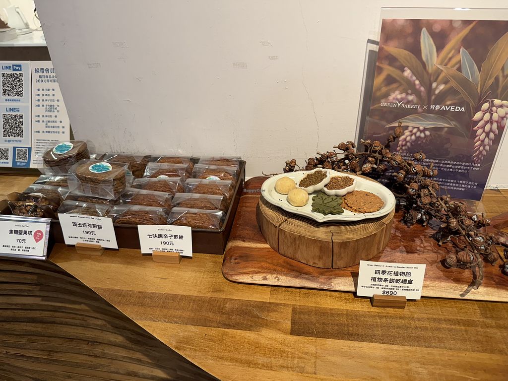 綠帶純植物烘焙, at 台北市松山區延壽街171號, is plant-based vegan bakery that uses natural ingredients. Offers coffee and a range of snacks. Aim is to promote a wholesome vegan lifestyle, compassion for the animals, environment and body. Does not use any hydrogenated vegetable cream, egg replacement enhancers, artificial essences, or baking powder containing aluminum. No wi-fi. In addition to sweets and some products, they offer a savory scone, a quiche, and pancakes (on the weekends only). Relocated from 171, Yan Shou St, Songshan District. Open Mon-Sun 11:00am-8:00pm.