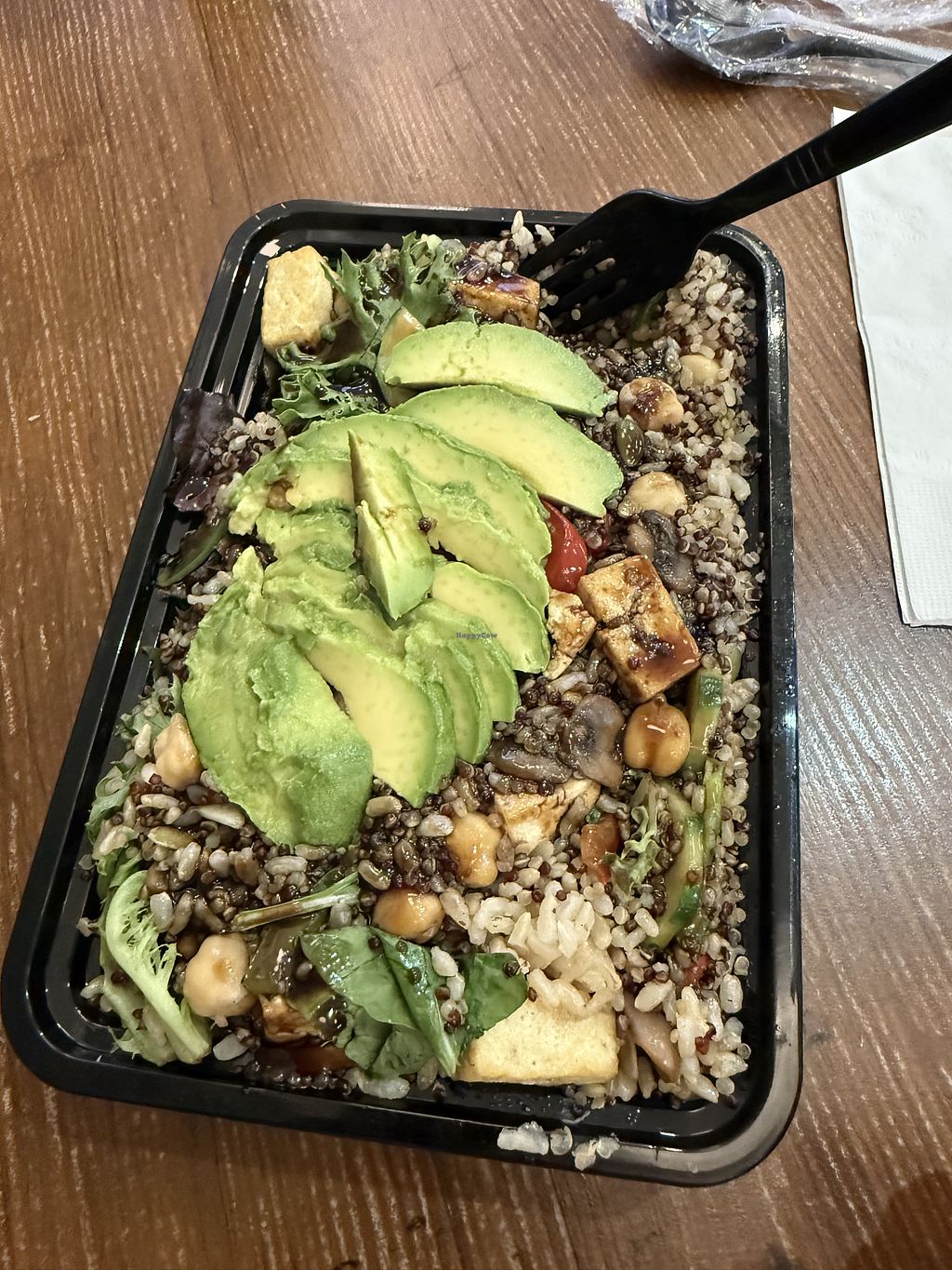 Serves meat, vegan options available. Health-focused cafe and restaurant with vegan choices. Menu is clearly labeled. Example offerings include vegan Turkish lentil soup, customizable, made-to-order salads, vegan buddha bowl, grain bowl, burritos and more. Open Mon-Fri 6:30am-11:30pm, Sat-Sun 8:00am-10:00pm.