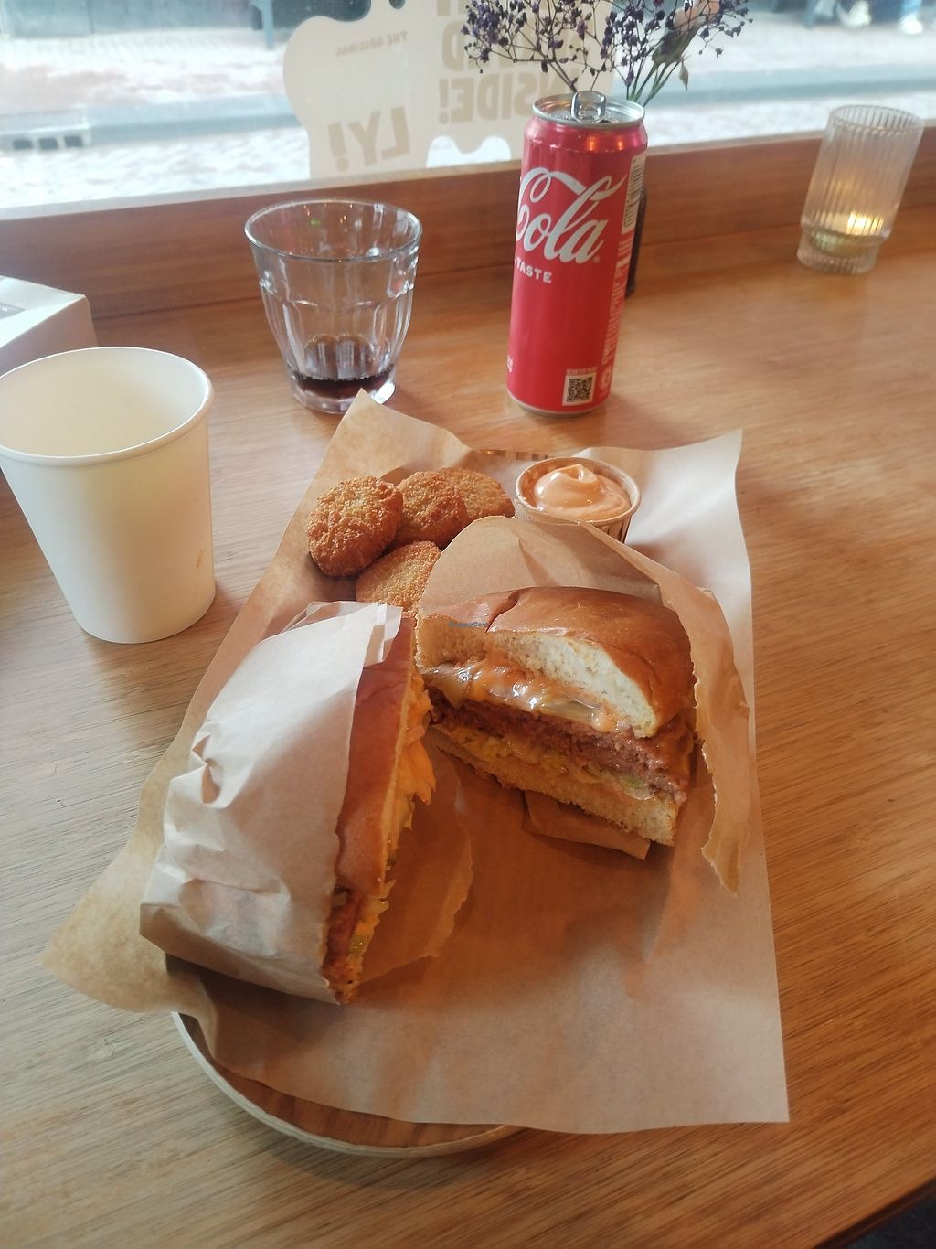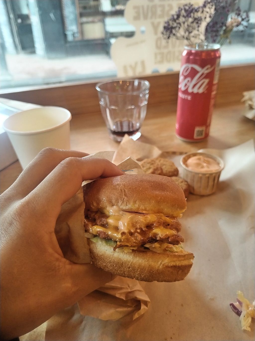 this really reminds you of the classic junk burger experience. i really liked the taste, the vibe is small but comfortable. price/performance ratio could be better, you pay more than you receive in my opinion. still, its a nice spot and worth a visit.