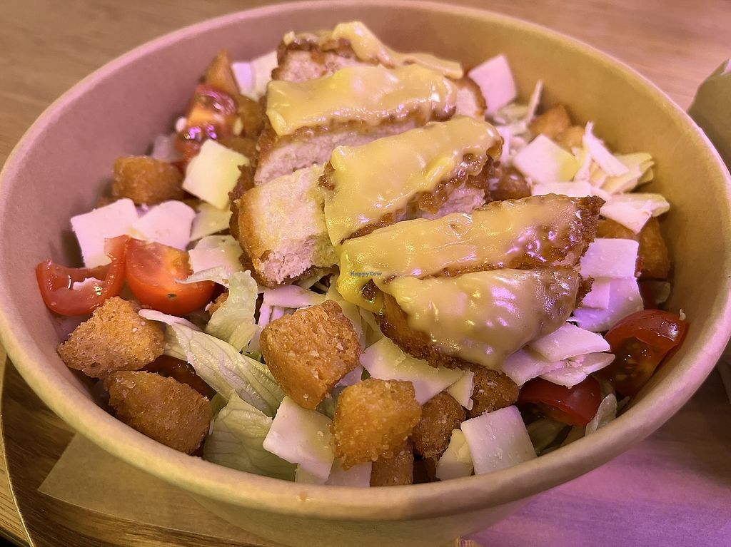 Super Chick’n Caesar salad with Beyond Chick’n and cheese that was fab. Loved the croutons, dressing, and Iceburg and lettuce. Really great. Nice burger as well with Redefine Meat. Yum again. The French owner was very personable and funny. He made a good suggestion we appreciated and was helpful.