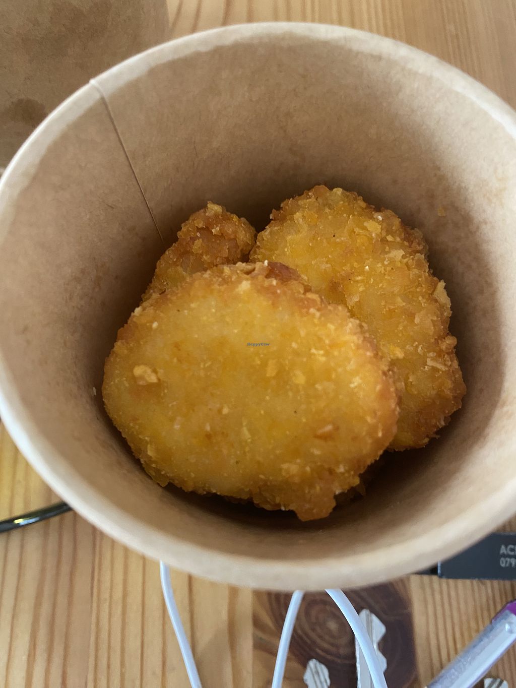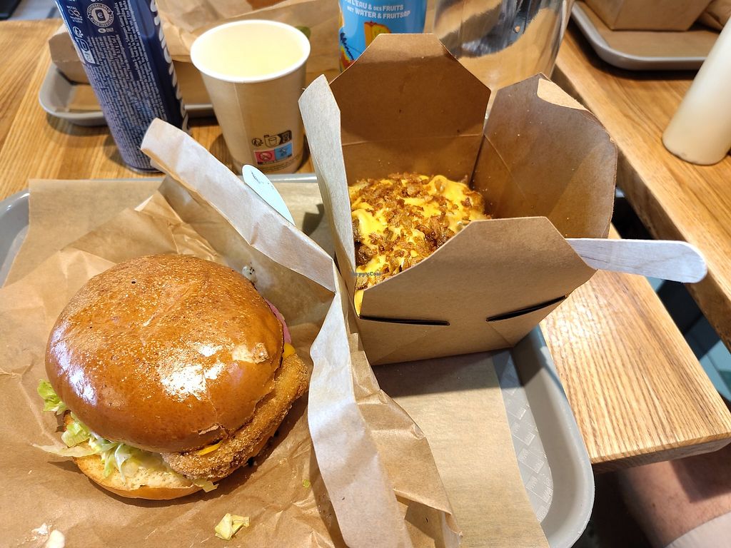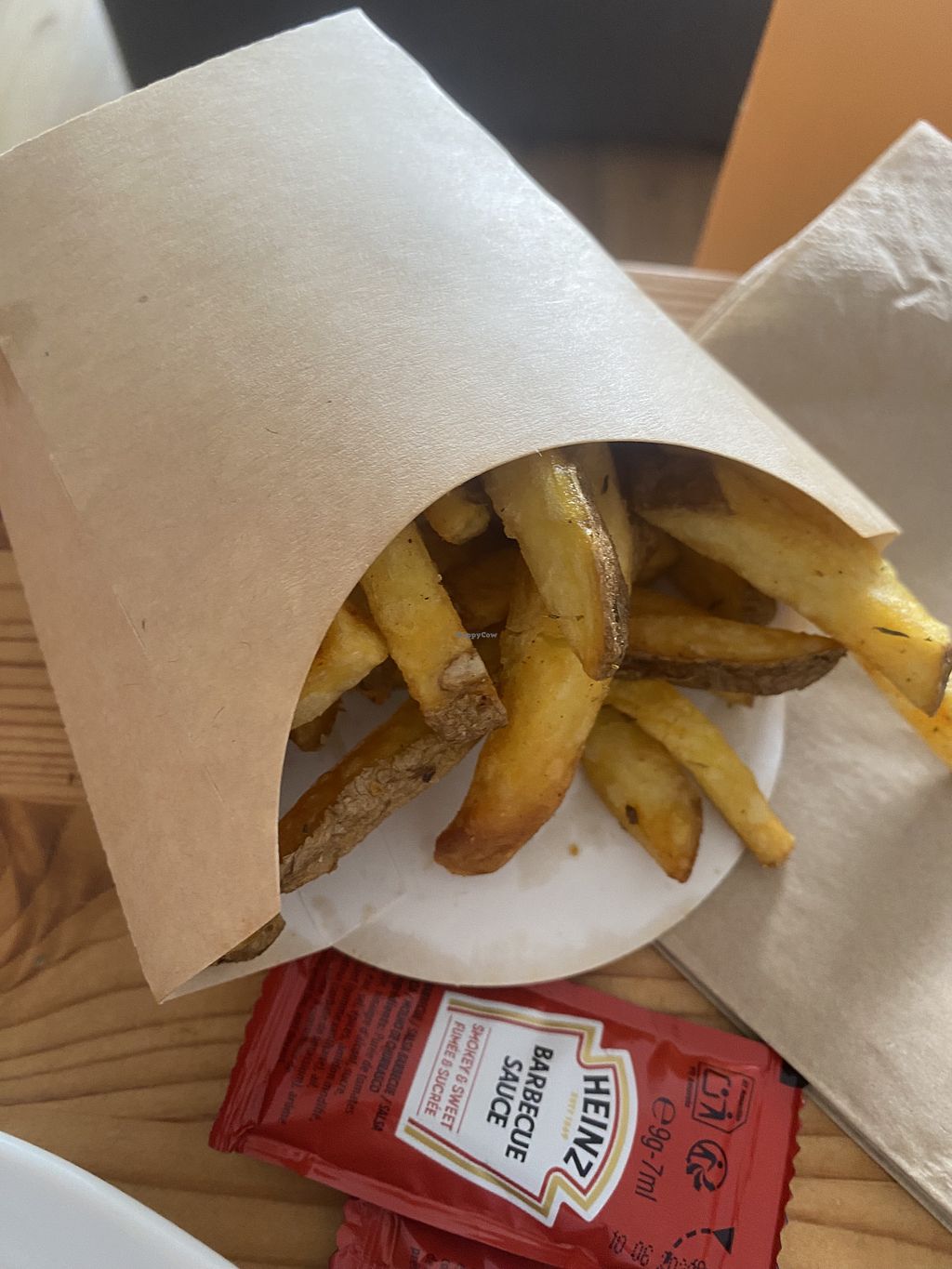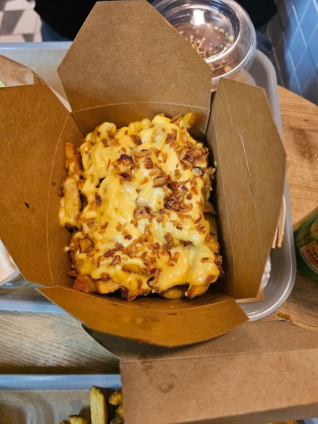 Between us had the vegan 'chicken' nuggets and the fries, sweet potatoe fries and the cheesy fries. Everything was amazing!! Really great service, staff were helpful and were happy to offer different sauces. Also had the vegan white wine which was good!