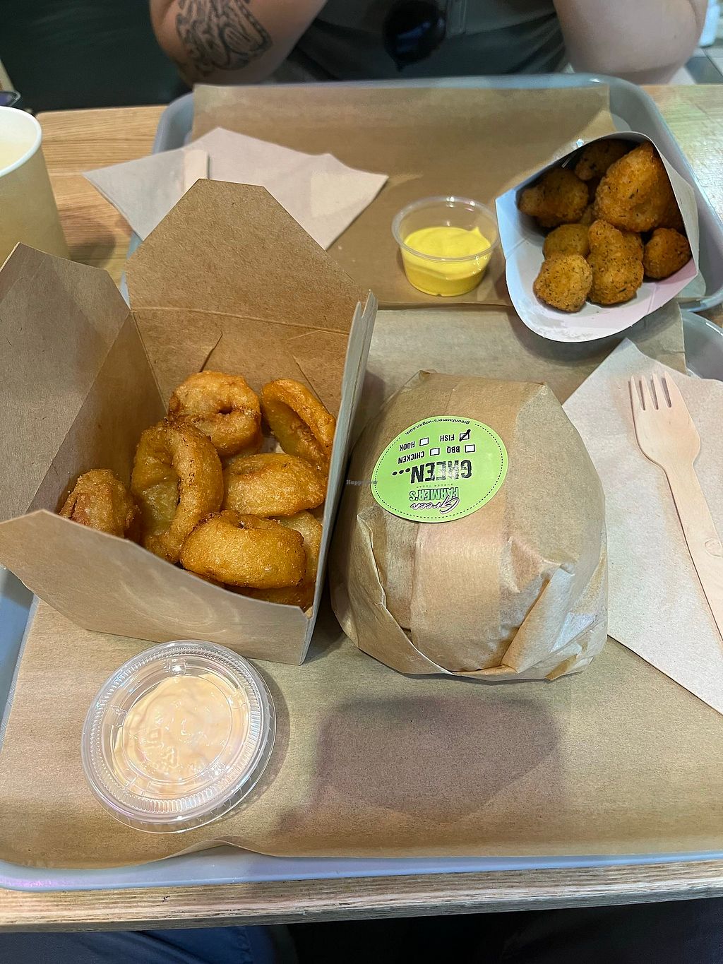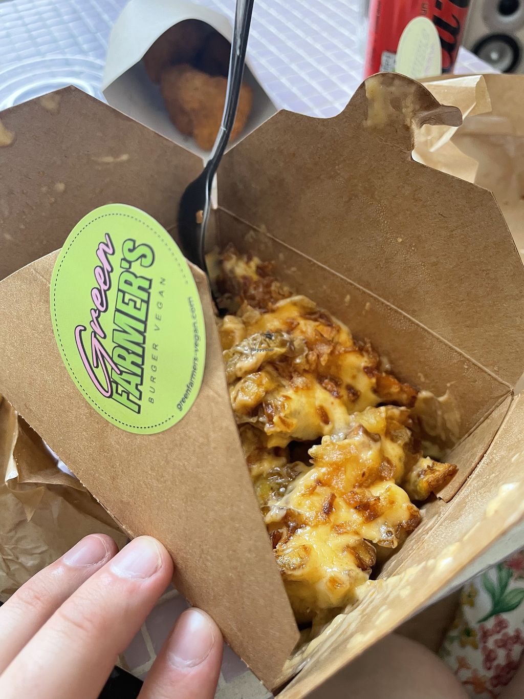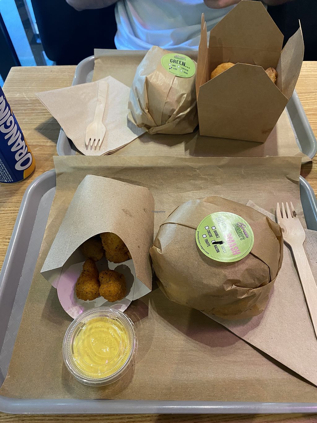 Between us had the vegan 'chicken' nuggets and the fries, sweet potatoe fries and the cheesy fries. Everything was amazing!! Really great service, staff were helpful and were happy to offer different sauces. Also had the vegan white wine which was good!