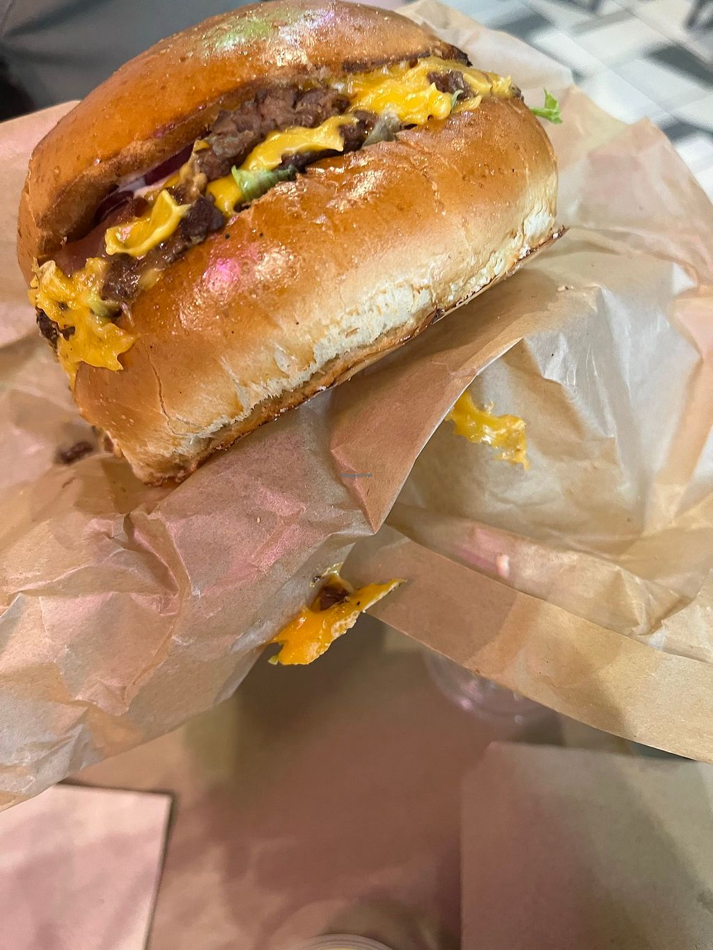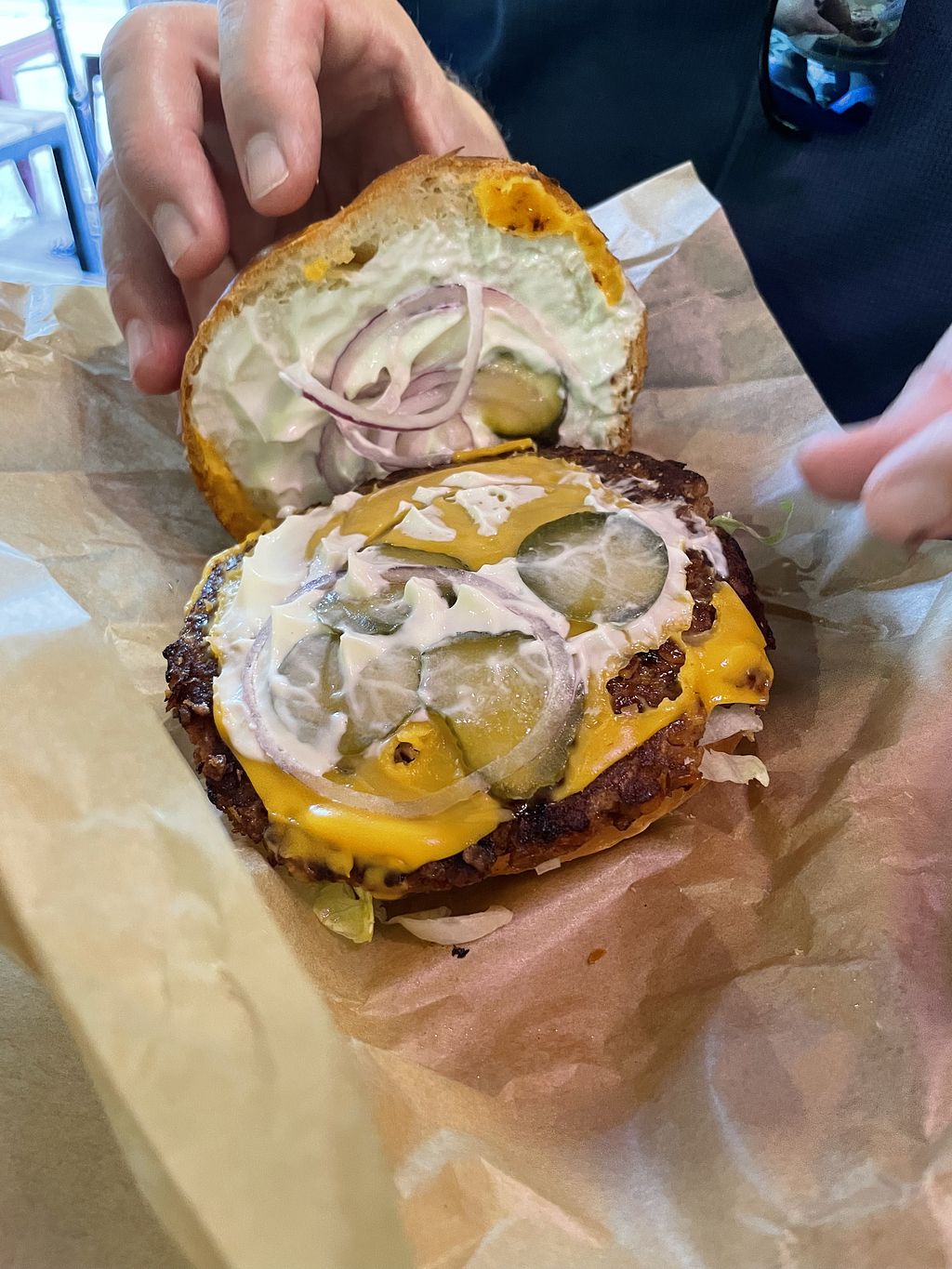 Pros: Good Burgers, Vegan Cheddar was so cheesy, Friendly
