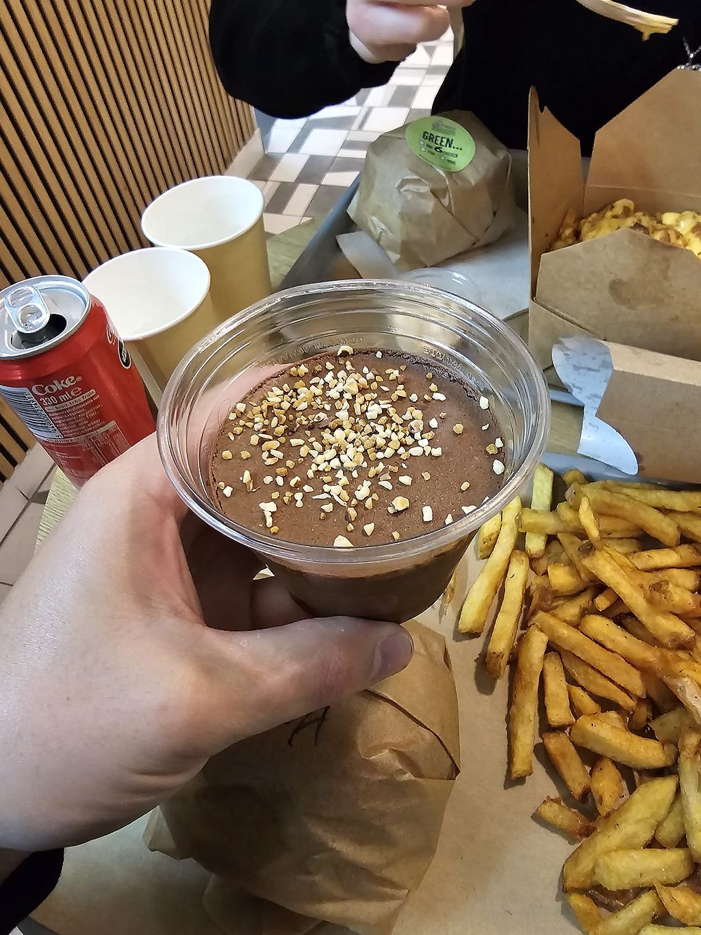 Das war der beste Burger den ich je gegessen habe. Auch super Preis. Ich hatte den Green Chicken im Menü mit Fresh Fries Cheddar. War unglaublich lecker. Das Chocolate Mousse war mir ein etwas zu herber Schokoladengeschmack. Aber der Burger war perfekt!