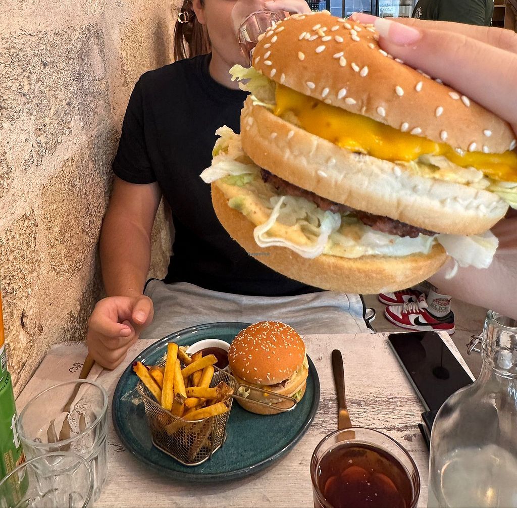 The atmosphere was nice and cozy. We felt very comfortable. The stuff was very welcoming and kind and it was easy to communicate in english. The burgers were awesome, especially the vegan “Big Mac” was delicious and tasted almost the same as I remember. The fries were also good. A must eat in Montpellier!