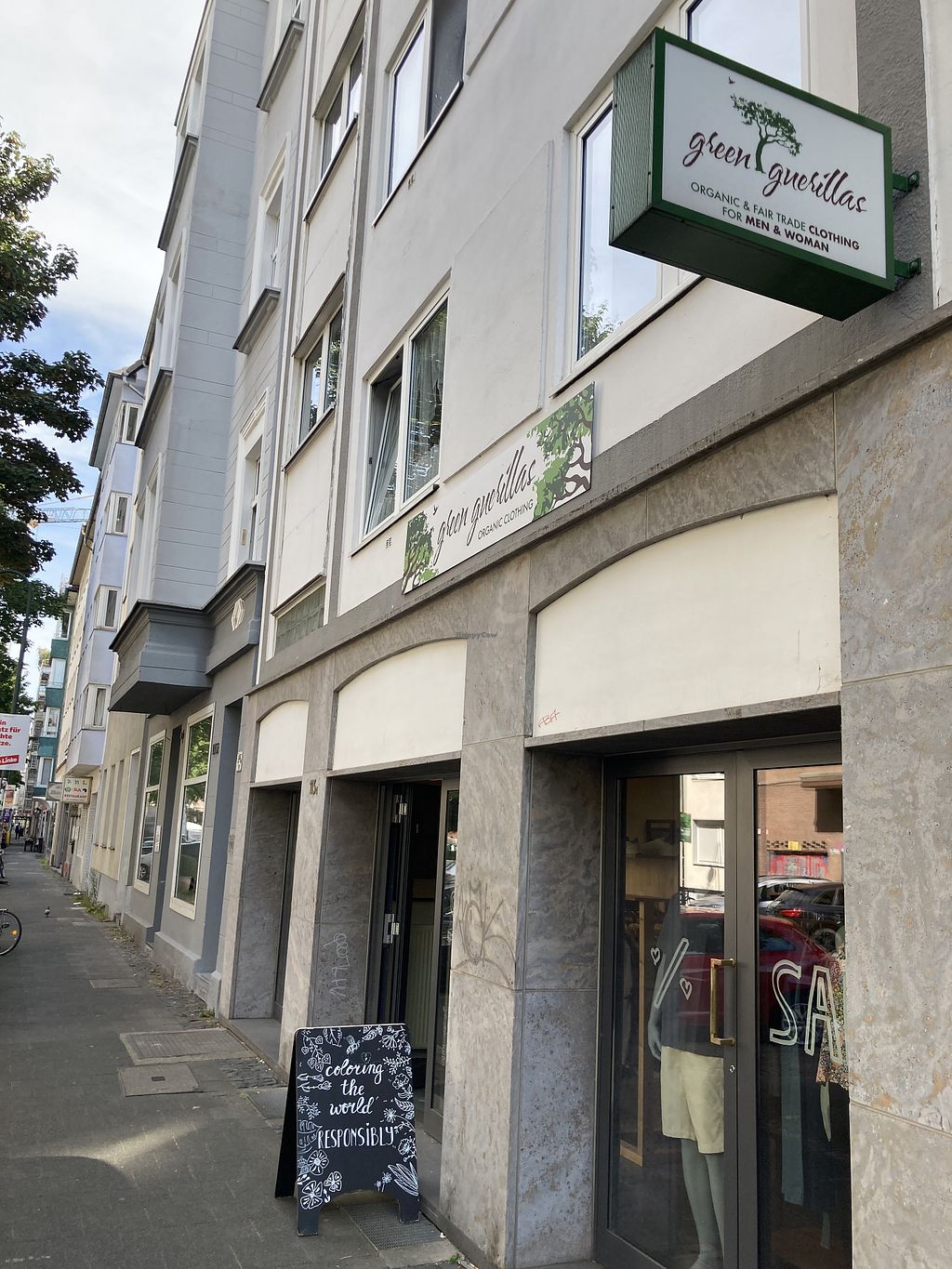 bei green guerillas gibt es klamotten aller art: jeans, t-shirts, unterwäsche, jacken, blusen, hosen, socken, schuhe... alles sehr nachhaltig, vieles ist z. b. aus 100% bio-baumwolle. renommierte marken wie armedangels sind vertreten.