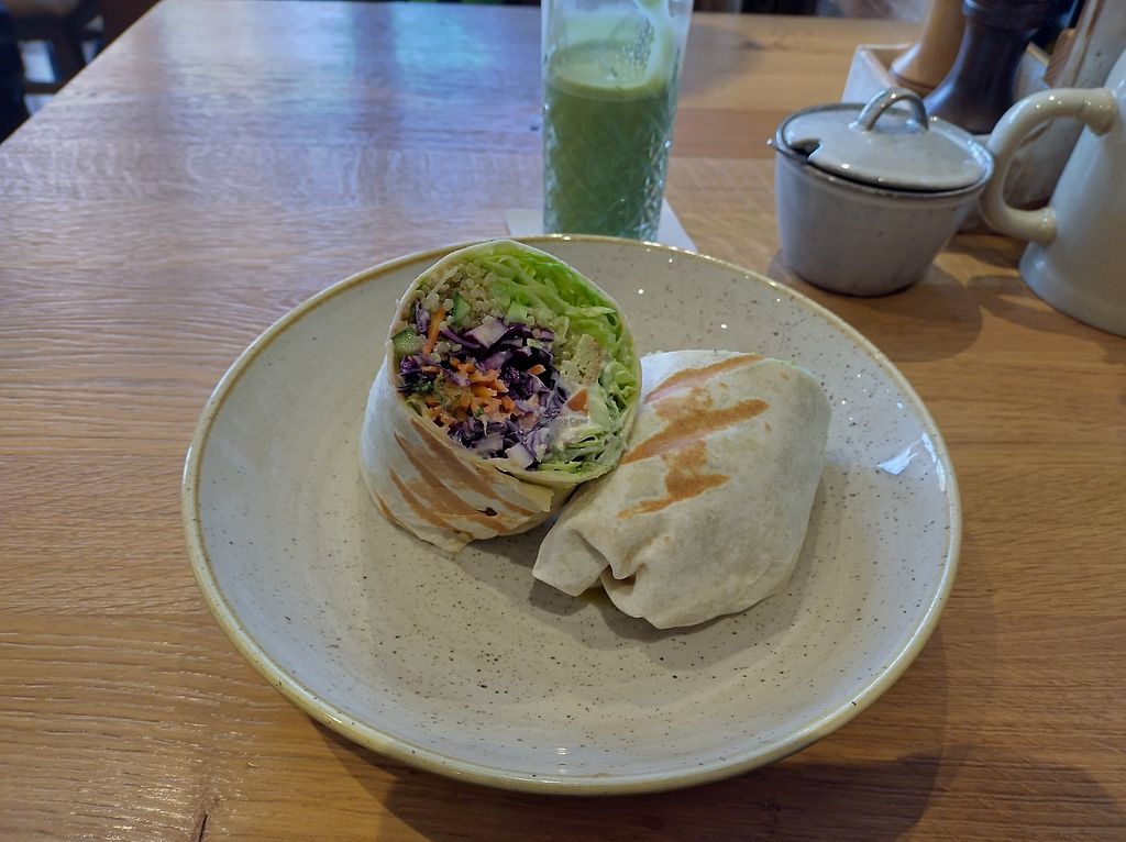 Wir hatten die Goldene Milch und heiße Schokolade - beides sehr lecker. Zudem ist der Fitness Wrap richtig groß und super schmackhaft!