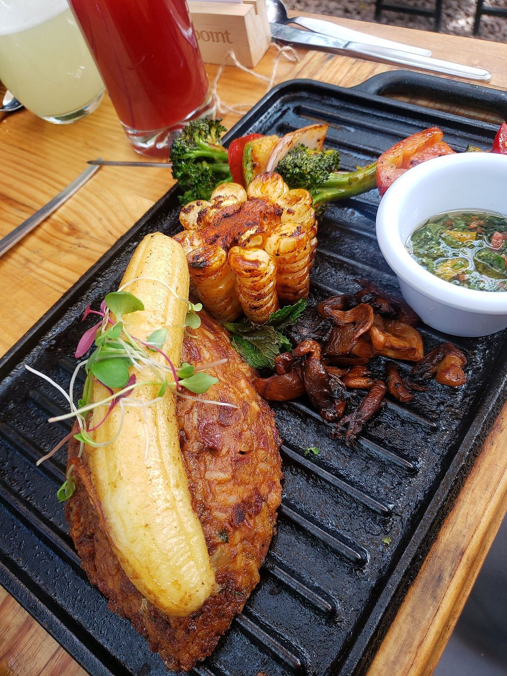 The food is incredible. I loved everything I had, the vegan croissants, Kim chi, kombucha (from the store downstairs), the vegan grill, brownie, scone, cocktail... The service is also excellent, every waiter/waitress we had was very competent and lovely.