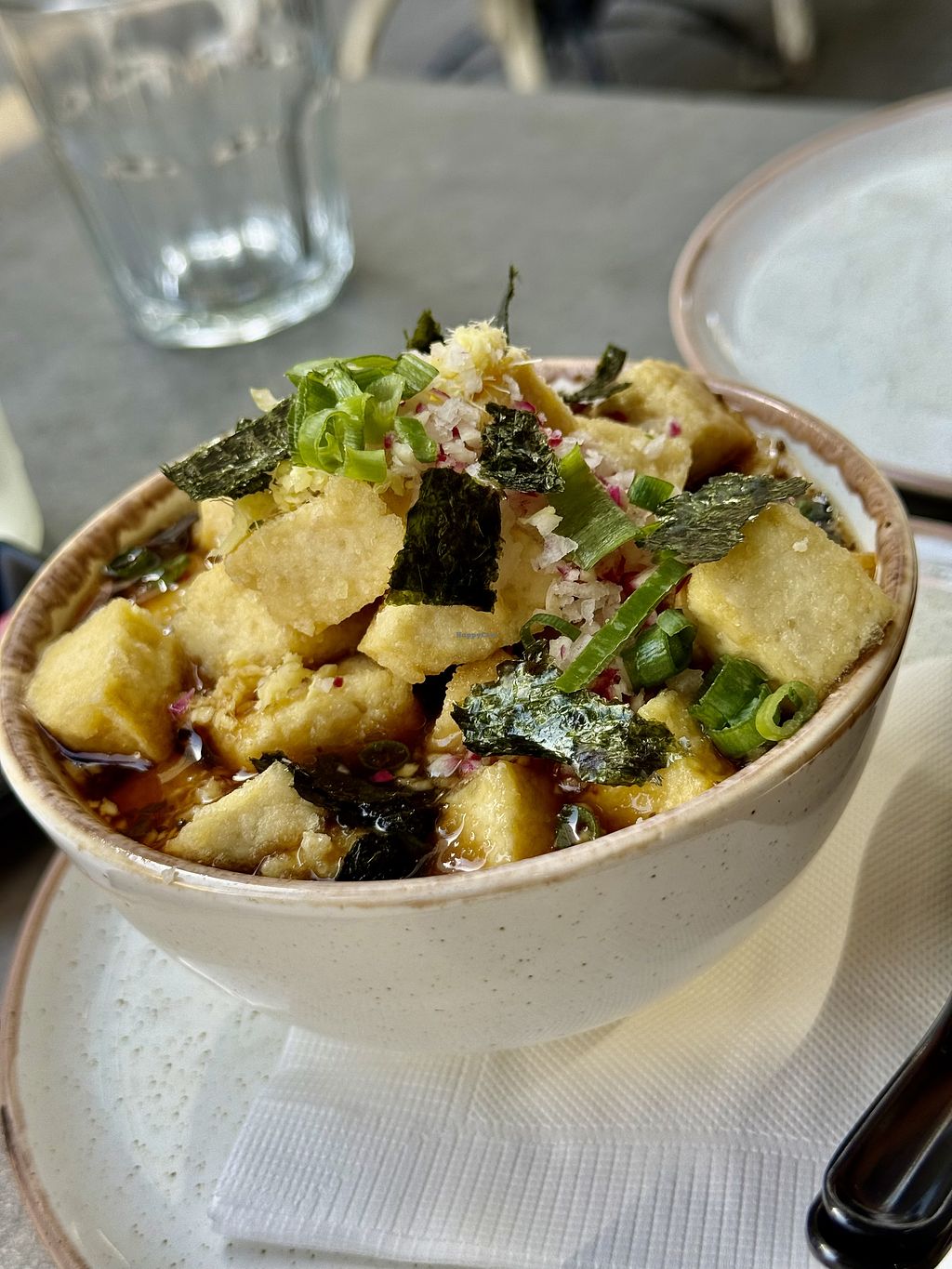 Nice place at a great location in Tel Aviv. We came for lunch on a Friday and the streets were bustling with dinners and shoppers, very colorful, very vibrant. Service was top notch, this young server takes her job seriously and showed us service levels above and beyond. The food was very good, not authentic Japanese by any means, but delicious nonetheless. Serving sizes are generous and plating and presentation were very nice. They offer a huge menu with vast selection, there’s something for everyone. Lots of meat and fish substitutes, lots of tofu and mushroom options. Recommended!