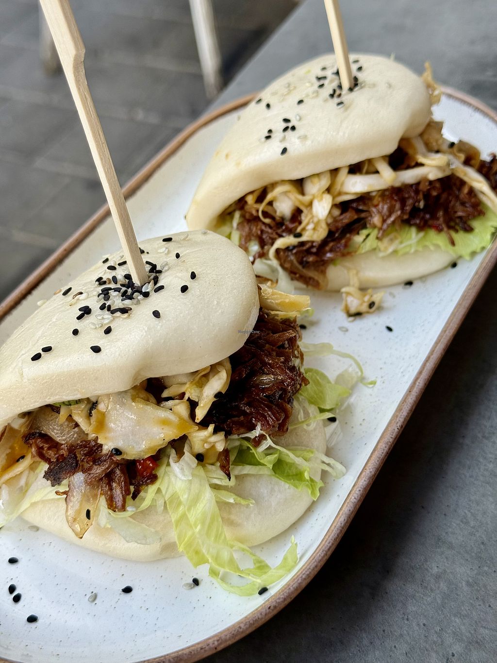 The atmosphere is super cool with outdoor seating in a very trendy neighborhood - food is delicious and unique! We took it to go and it was still delicious and soft a little bit later.