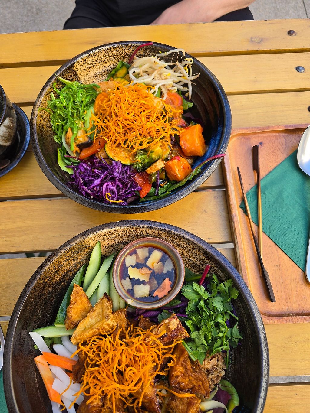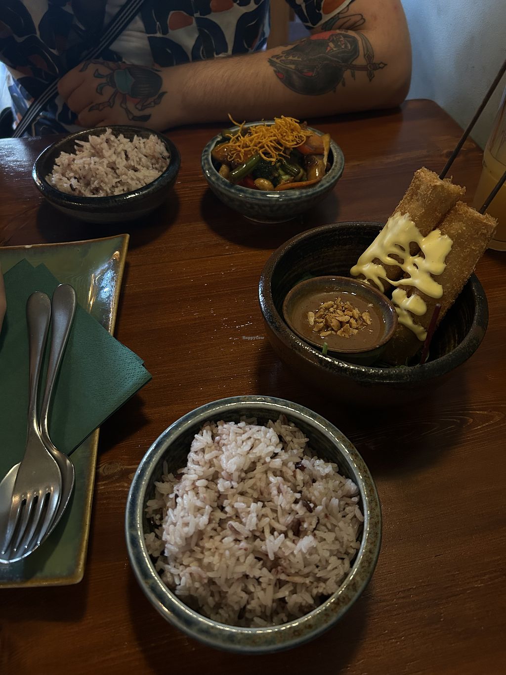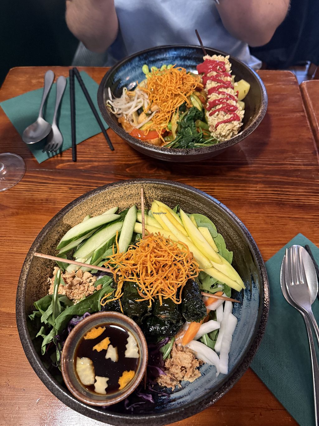 Two main dishes, top one is with tofu and bottom one is with spring ro…
