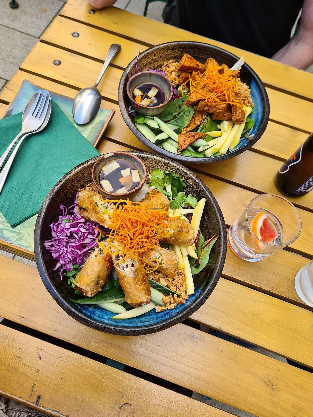 Essen für zwei Personen, glutenfrei bis auf die Reis-Flakes, wir haben…