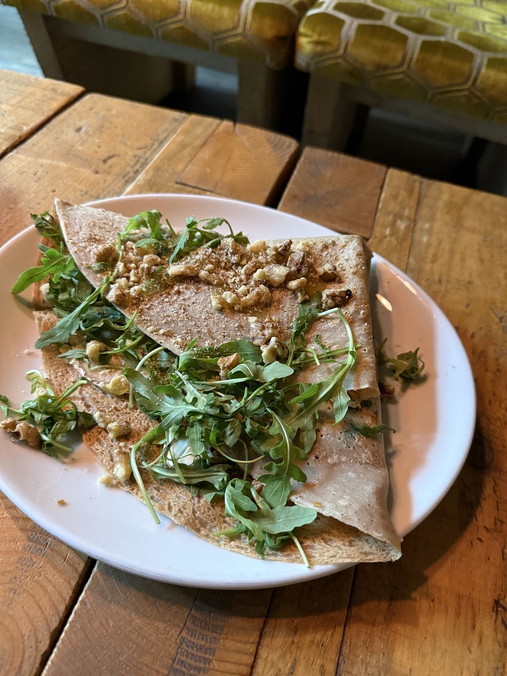 I have a Camembert, walnut, rocket and a mustard/fig dressing. It was so good.