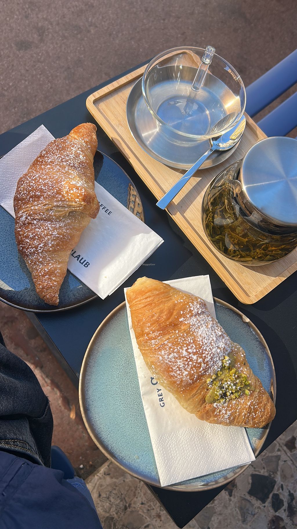 amazing pistachio croissant, and delicious hot chocolate. they don't have matcha unfortunately
