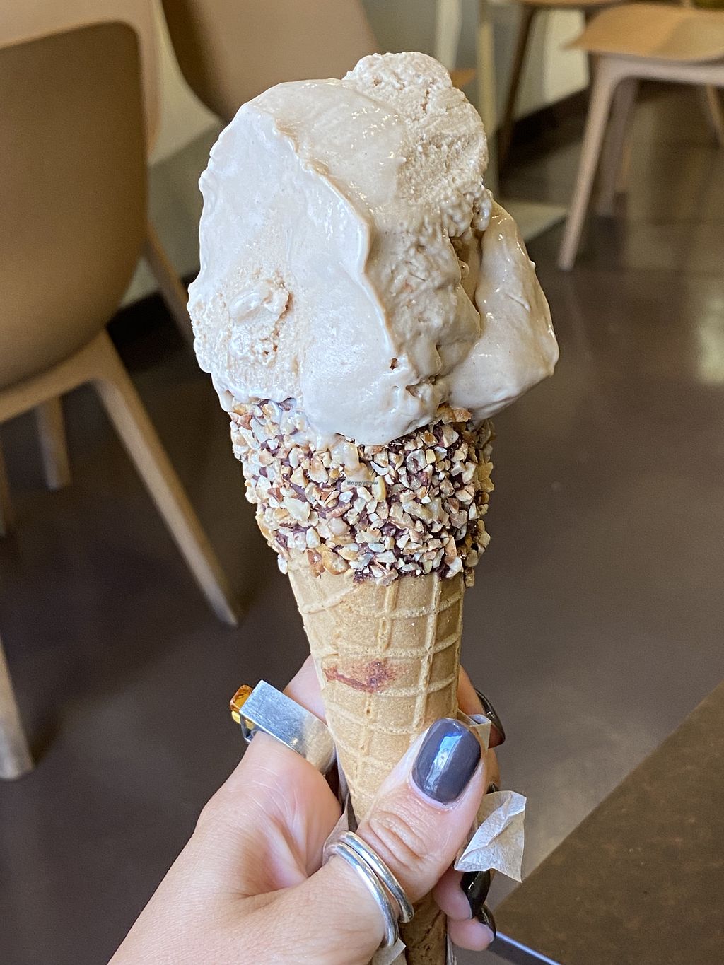amazing chocolate-hazelnut ice cream that tasted exactly like nutella! worth the price.