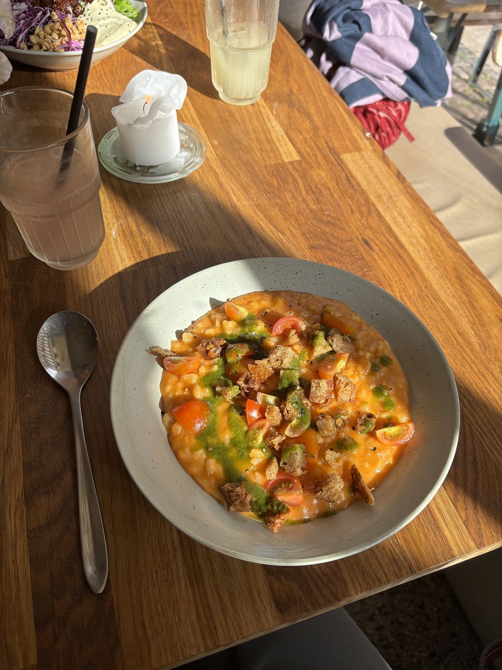 I stumbled over this small incredibly delicious restaurant. They use a savory porridge as a base ( like a Buddha Bowl) and pile veggies on top ( there are also meat options).