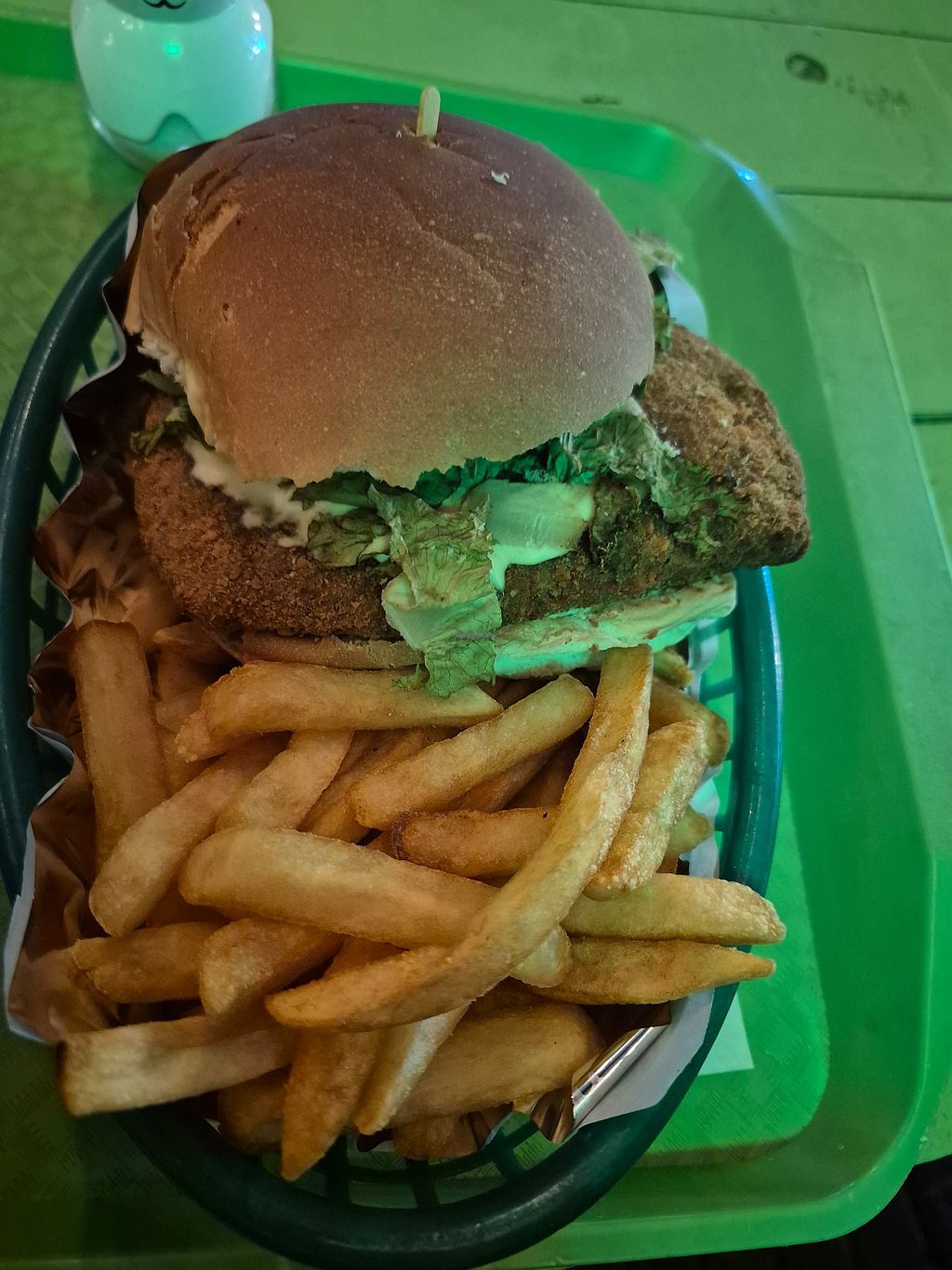 The food was acceptable: decent burgers and tofu, but clearly low-quality ingredients, especially the bread and the fries, and very little care or passion in the preparation.