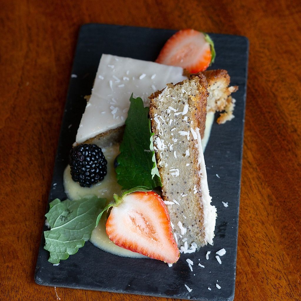 Shroom steak with carrot puree, coriander pesto, roasted corn and broc…