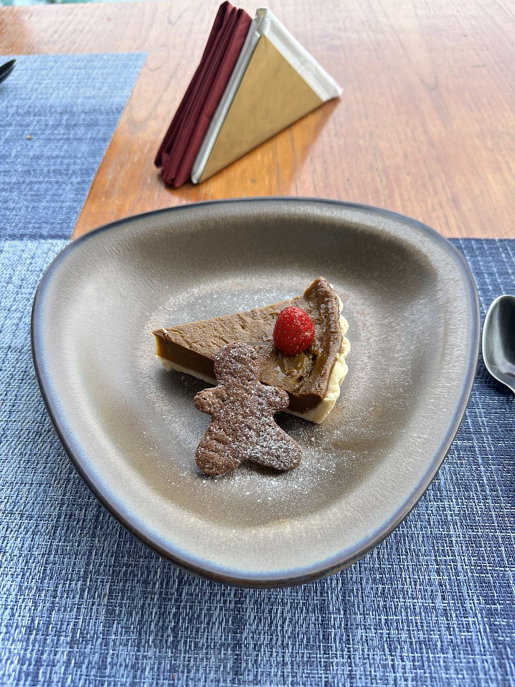 Dessert had a Christmas theme and consisted of a jelled berries on a nut based crust and a gingerman biscuit. I loved it. My partner wasn't keen.