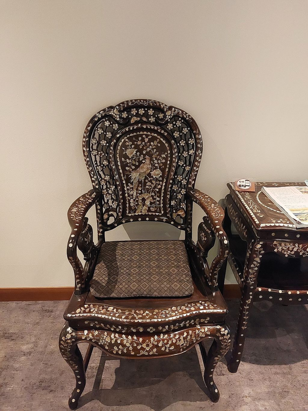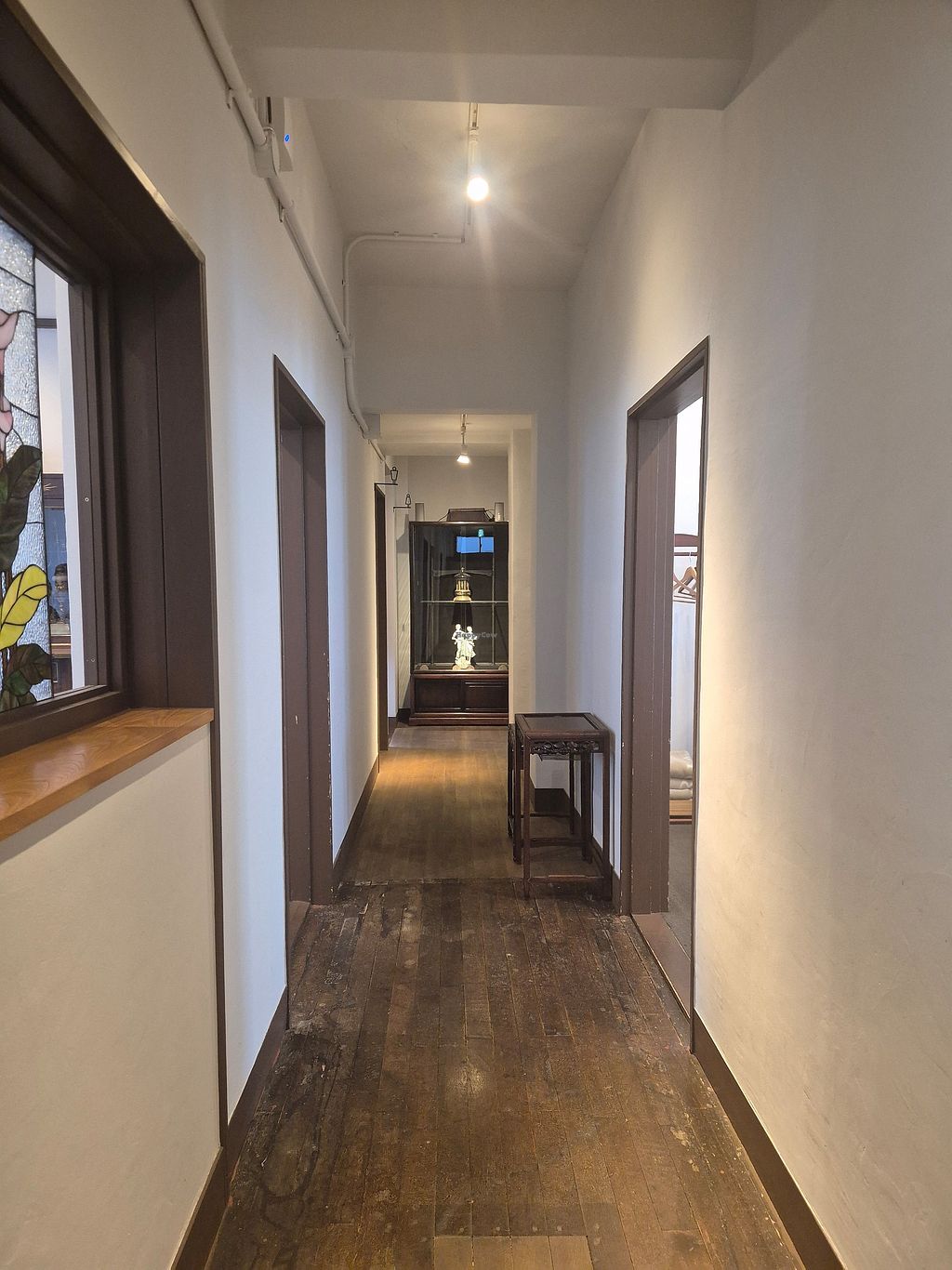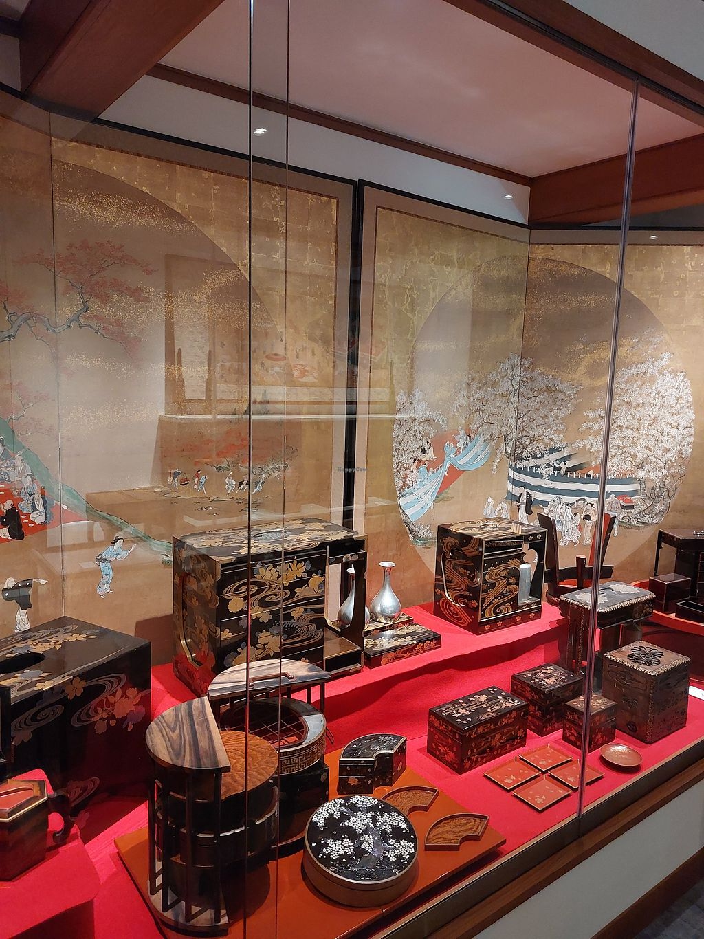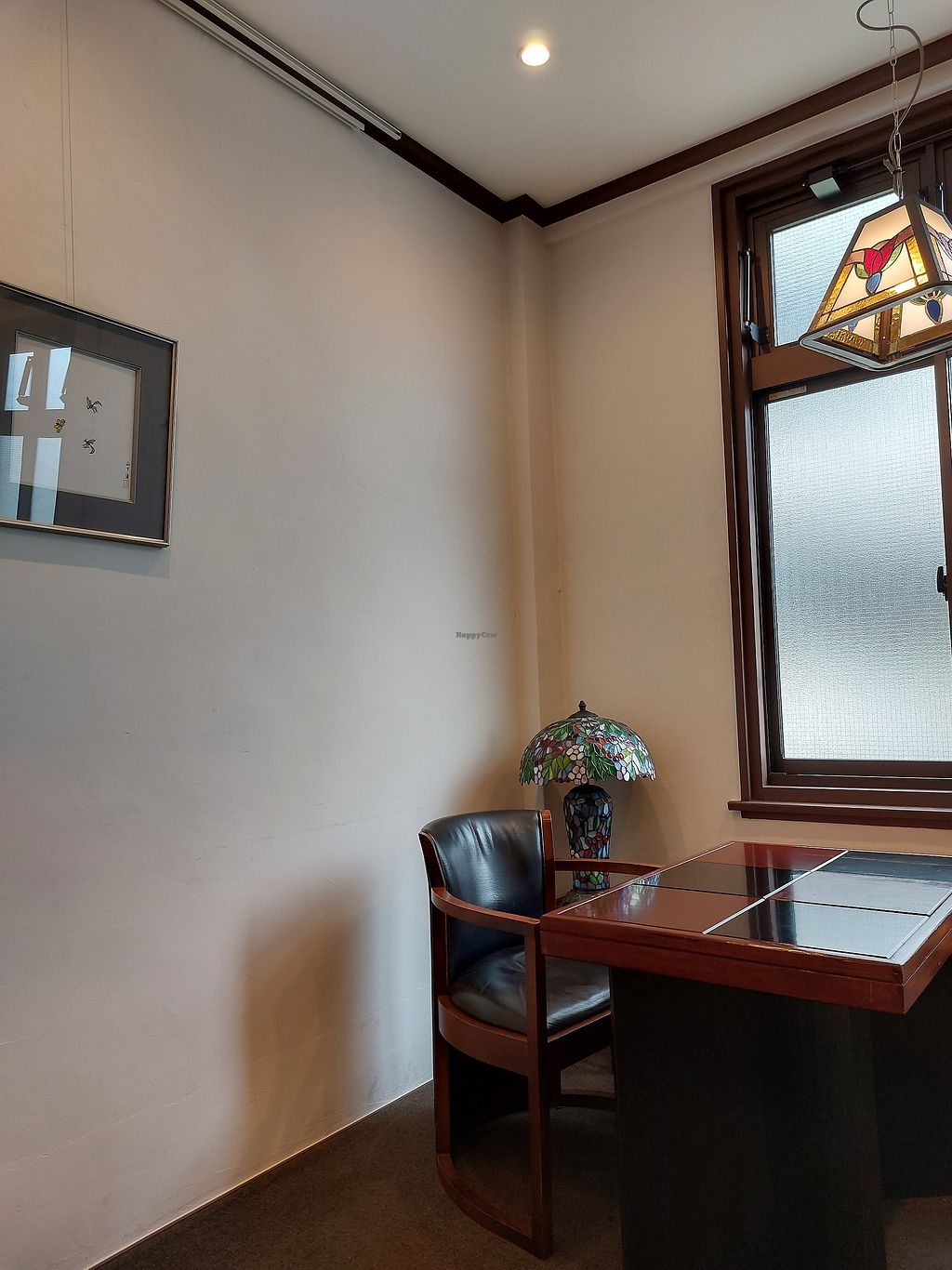 You enter an traditional japanese house and are greated with an japanese garden and an rather big museum you can take a look at. There are tables on this and on the second floor. The interior of the second floor is traditional western and looks very fancy.