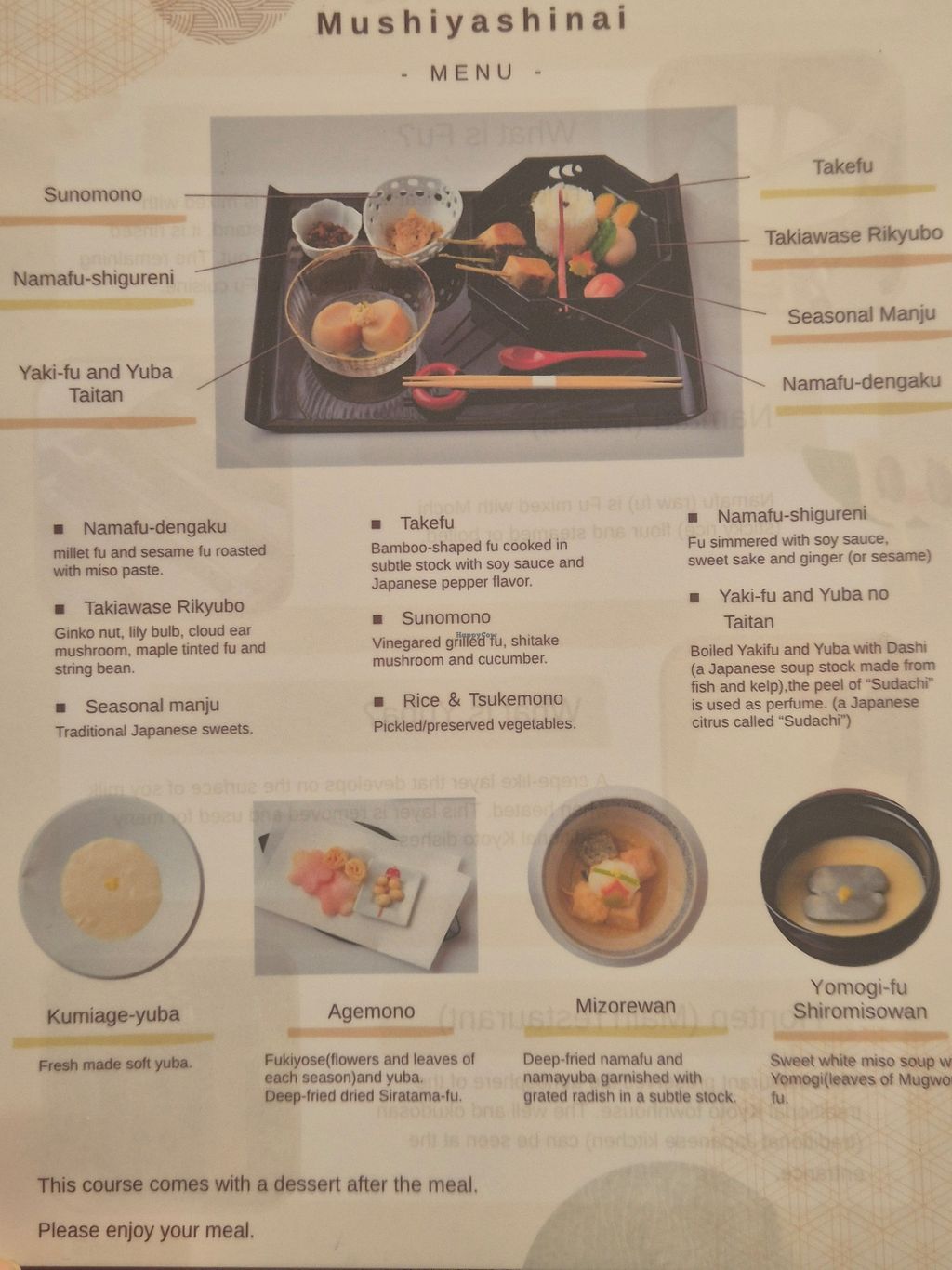 This restaurant offers one set menu centered around Fu (wheat gluten).