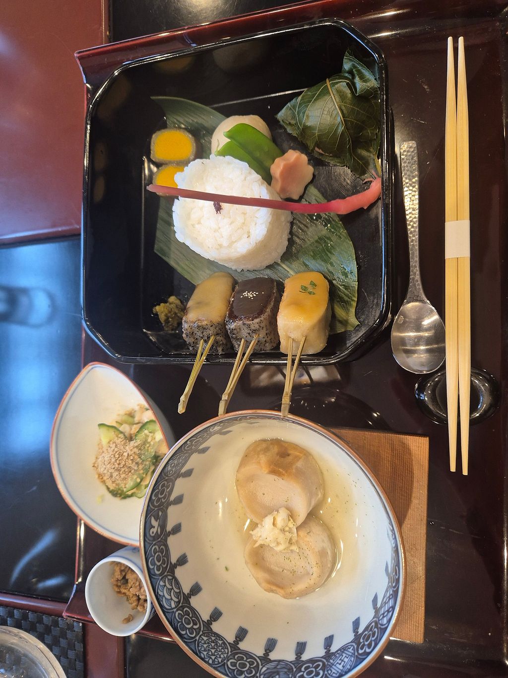 Read moreAt first you get a big plate with several dishes including nama-fu, pickles and rice. After about 10 minutes we got another plate of fresh yuba which was extremely creamy. After that we got served several other dishes freshly prepared to have the perfect temperature for eating right away.