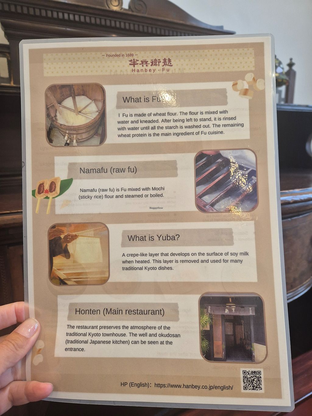 I came to Hanbey Fu after reading the review here and the restaurant ia beautiful, traditional old Kyoto establishment serving phenomenal variations of Fu (wheat gluten, but so much more versatile than seitan) and versions of soya milk skim (like clotted cream) ranging from creamy fresh to dried and fried.