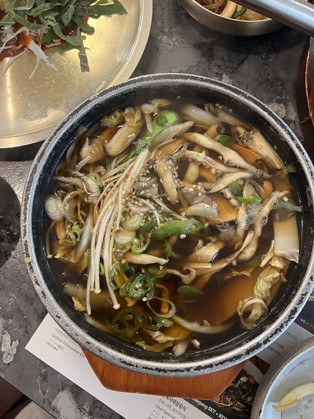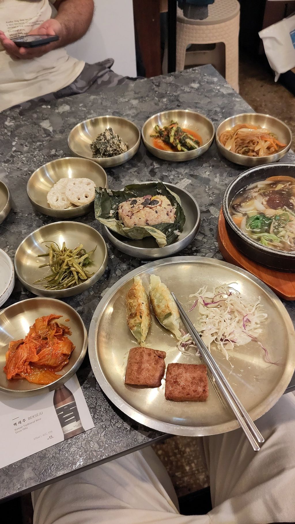 I wish I could give 5 stars! There’s a vegan set course available, some of the best vegan food I’ve had in Korea! So many banchan, delicious mushroom soup, mandu, fake meat which was incredible and savory. Tons of food - I was one person and I ended up with enough leftovers to take home for another 2 meals.