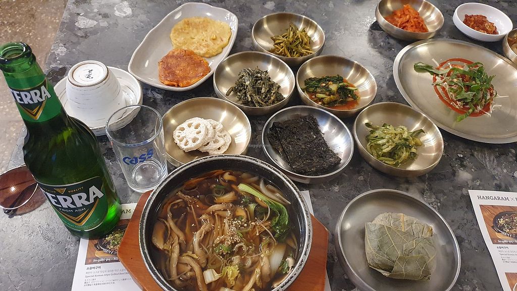 This was sooo good. Went there just a few hours after arriving in seoul for the first time. Walked about 10 min from Myeongdong station and was the best way to start our trip. my sister is non vegan and this was perfect as she was able to eat what she liked and i had a fully vegan menu. before even ordering they fill the table with banchan (Side dishes) - which was so much that could have been a meal on its own. Then you can order what you will and he flavors are sooo good.