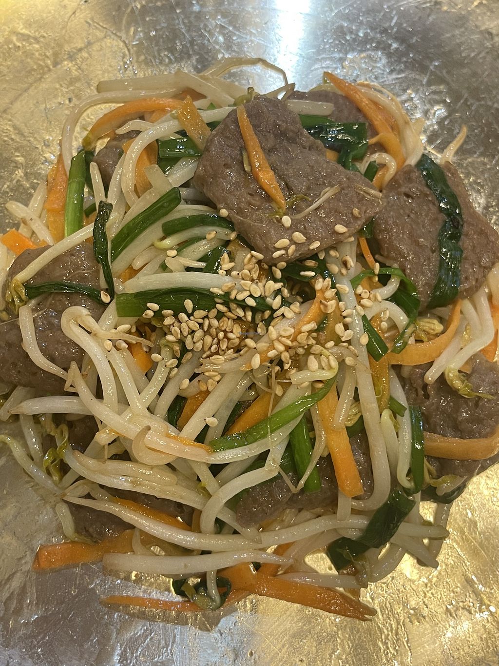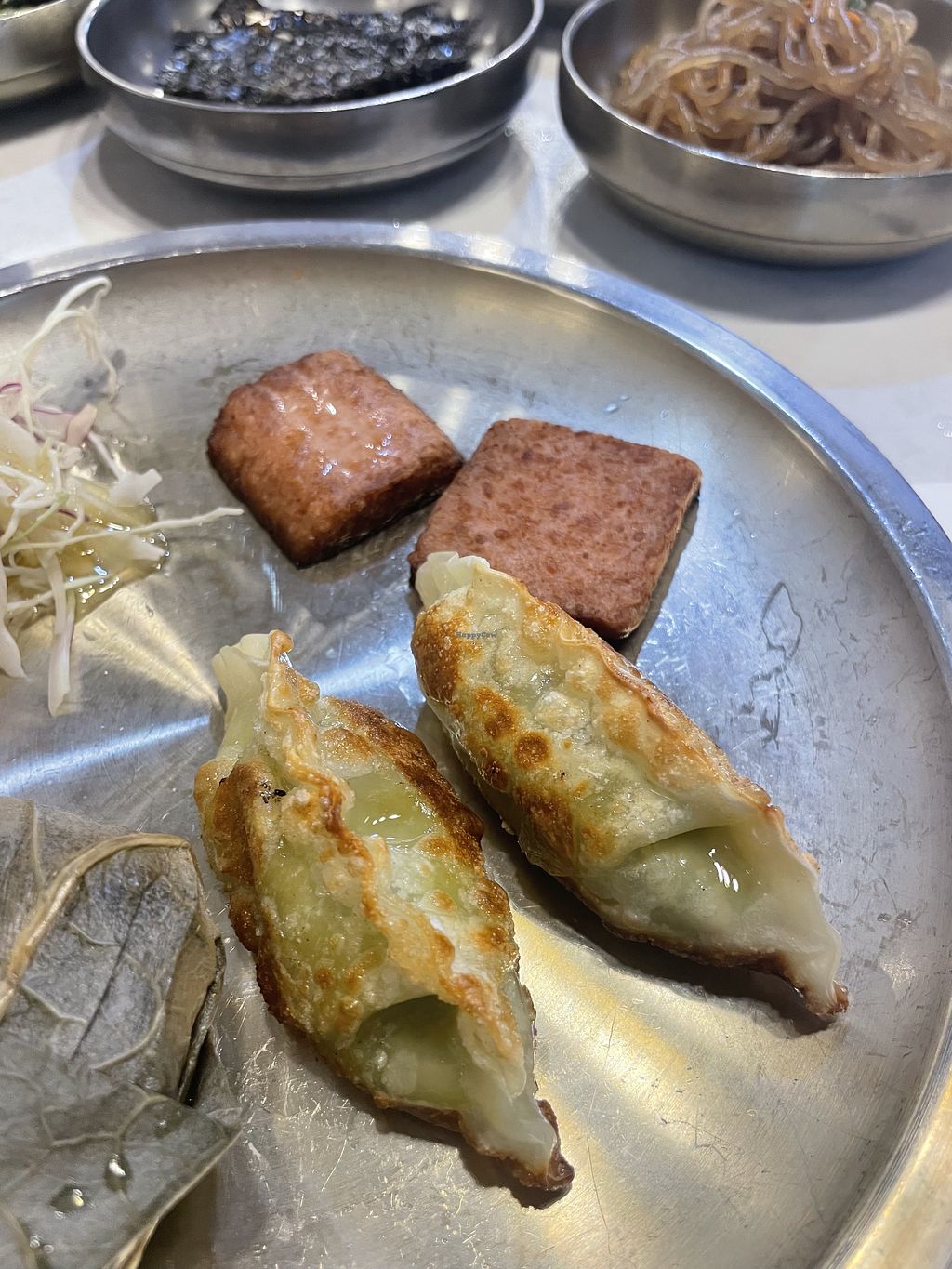 The rice with Mandu and mock meat was great, banchan plenty and many flavours, also Korean pancakes and stir fry (but oily but good still)