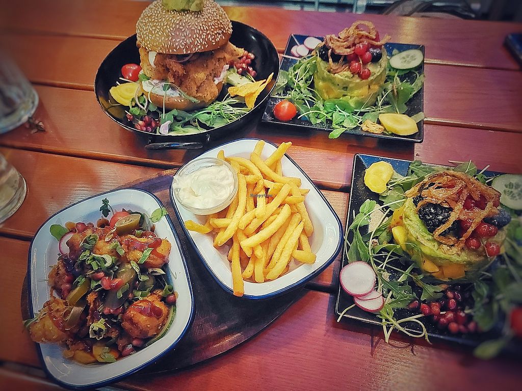 Ein kleines veganes Angebot an Burgern und Startern, die aber im Geschmack absolut überzeugen. Der Preis ist relativ hoch.