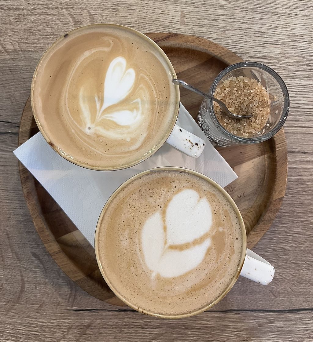 Cons: Glasses on table but water is paid, Have to pay extra for vegan milk alternative, Limited vegan cake options