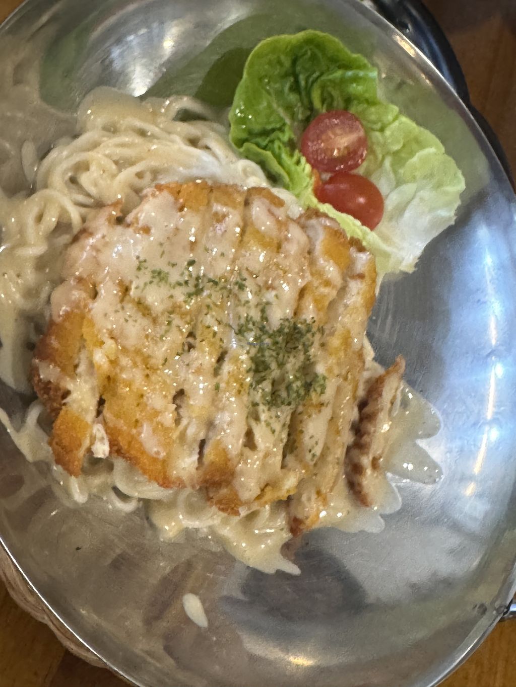 Quiet cafe with nice ambience. Some variety like teriyaki, nice starters.