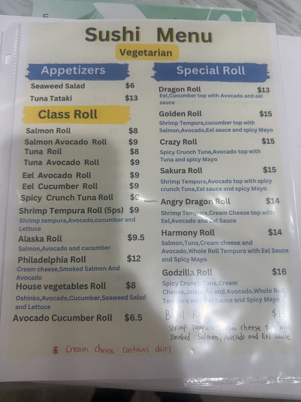 This place is consistently good. The food is tasty. The establishment is remarkably immaculate. Went here last night and saw they have a brand-new sushi menu and sushi station in the front of house. Unfortunately, and perplexingly, they use dairy cream cheese on their rolls.