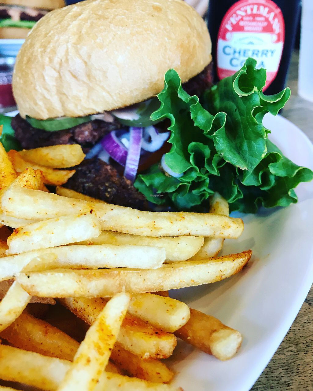 I had the beyond beef burger with fries and ranch! It tasted liked a gourmet burger from my favorite burger place. It did not make me sick. I usually get sick with soy meat. The bread was fantastic. The fries were seasoned well and the ranch was great! I highly recommend. The only downside was that they ran out of carrot cake 😟. Everything else was perfect!