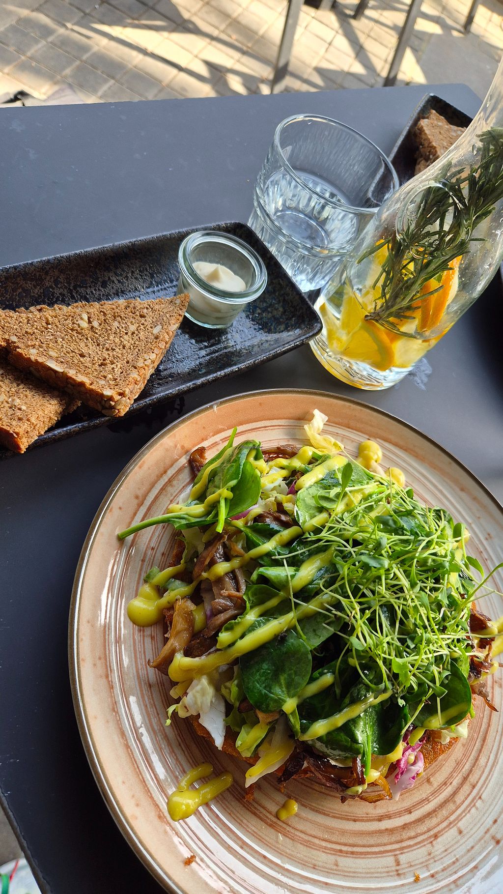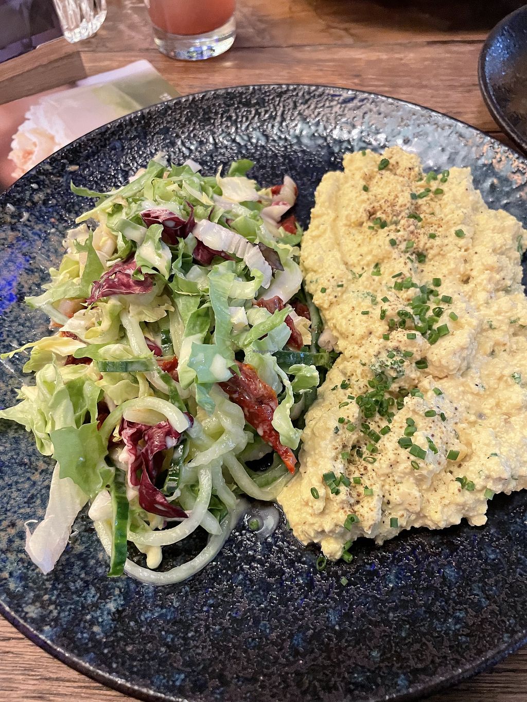 Read moreThe hummus was incredibly creamy and flavorful. I especially loved the combination with the dried tomatoes and vegan feta. Truly amazing. My only critique is that it came with a bit too little bread for the generous amount of hummus.