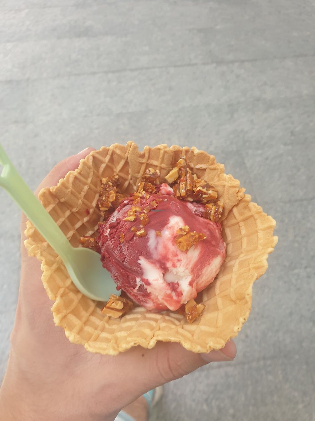 Got two scoops in a waffle - pistachio and vanilla, so creamy! Never ever have I had vegan ice cream like this