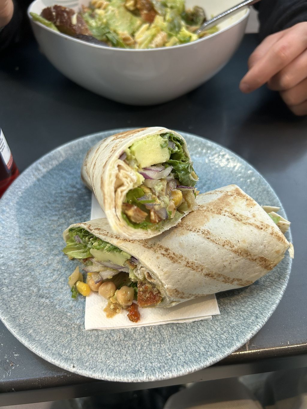 Serves meat, vegan options available. Offers a variety of healthy food. There is a salad bar with "make-your-own" option. Veg options for soups, burger and wraps. Open Mon-Sat 11:30-21:30, Sun 11:30-21:00.