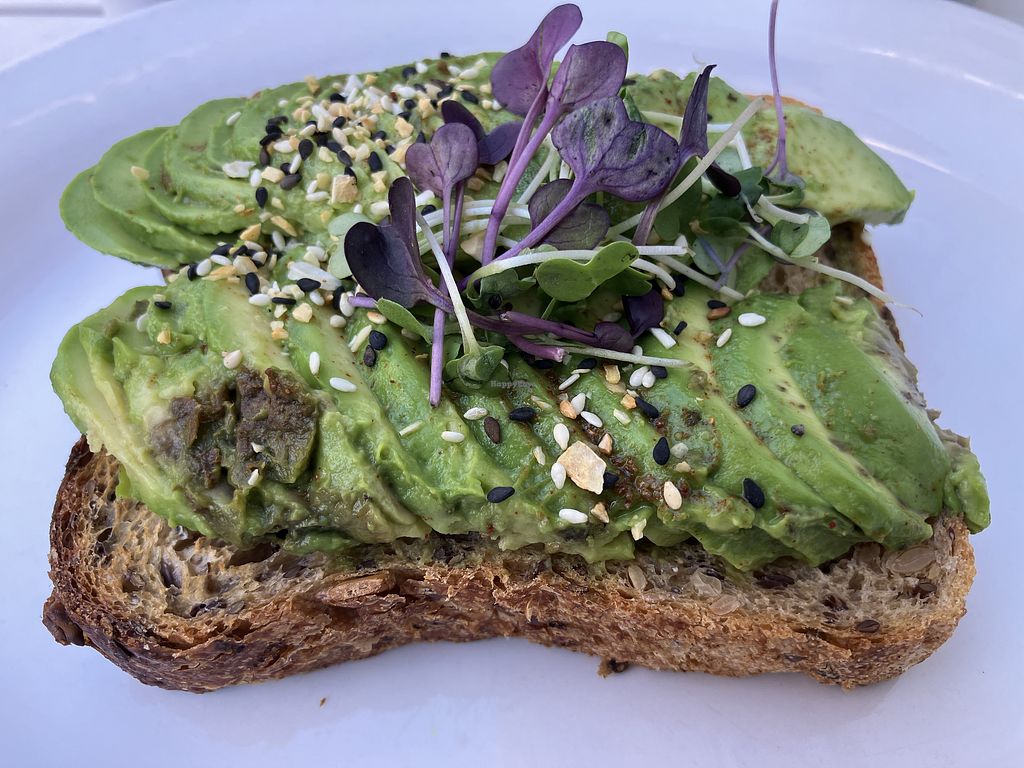 The avocado toast and vegan beast wrap were very good.