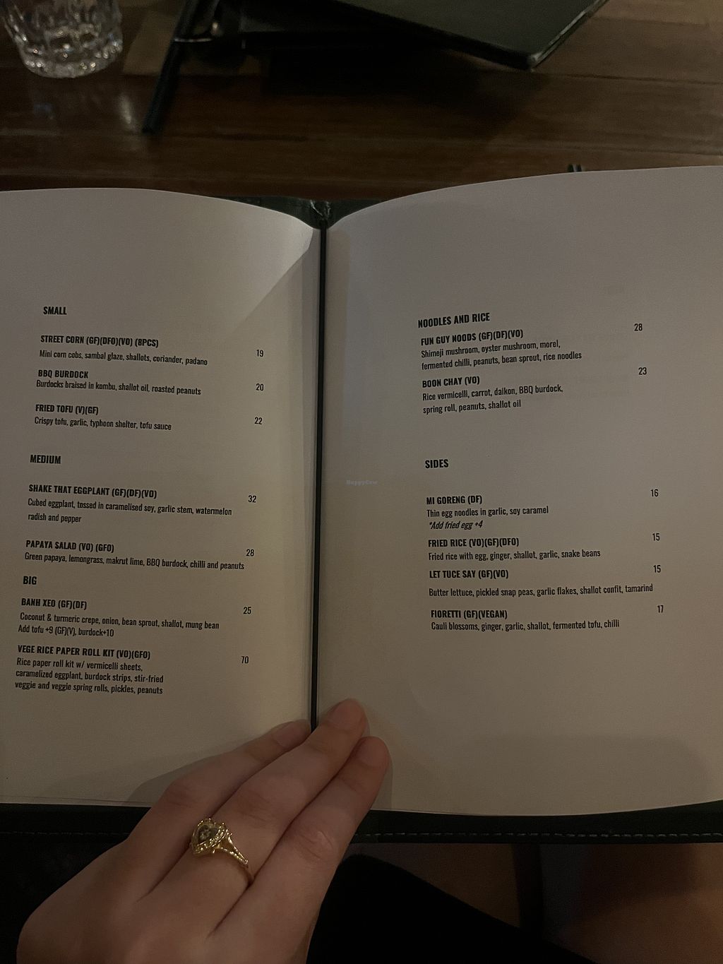 Does have a separate vegan menu, has many dishes to select from. Had my first vegan pho since returning back to Oz. This had many different veggies like cauli, brocolli, shitake, carrots, side of bean sprouts. Spring rolls(2) was fried and nice. Bill $15