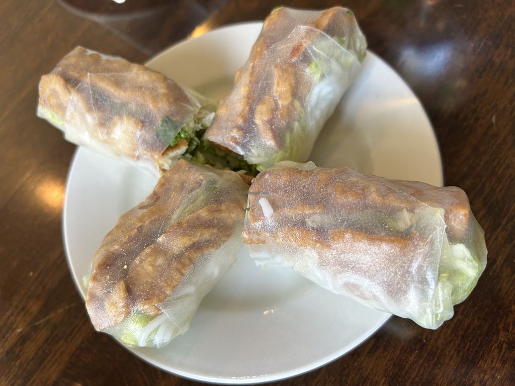 Then we got to the "Fried Vegan Spring Roll Vermicelli". I would have thought with "vegan" in the name the dish would be well adapted. It wasn't. It was essentially plain rice noodles with fried spring rolls on top, and a small medley of cabbage mix veggies. The spring rolls were not good--I dont know how they made a fried food unappetizing but it was probably the only time I have left a restaurant with leftover spring rolls in my life (albeit, they were oddly more enjoyable as leftovers). And the soy sauce that the waiter provided in lieu of the traditional sauce (which likely had products made from fishes) was inadequate to carry the flavor of the ensemble. I would give a hard pass to this dish.