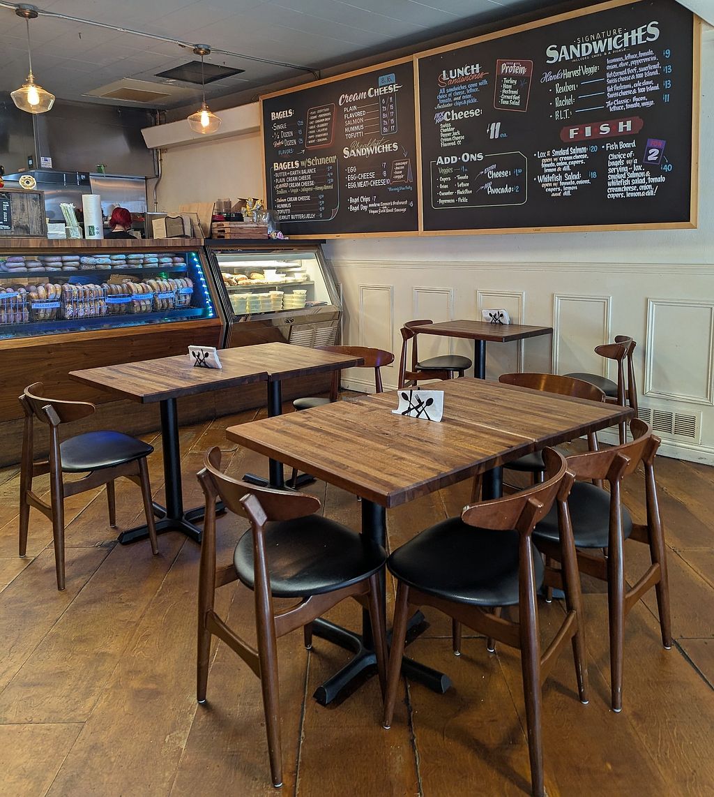 We were trying to find a place to eat after a day of climbing. We found this place while we were running around in the rain!! It was a great find. Everyone was really friendly and the homemade bagels smelled amazing. There were so many options for toppings and spreads and me and my friend found just what we needed. The bagels were packed full of veggies (cheese and meat were also available) and vegetarian/vegan spreads!! The order came with some kettle cooked potatoes chips as well. It was very delicious and I encourage you to pop in if your in the area and give it a try!!